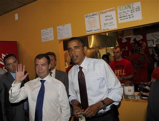 オバマさんとメドベージェフさんがハンバーガー店に行ったそうで