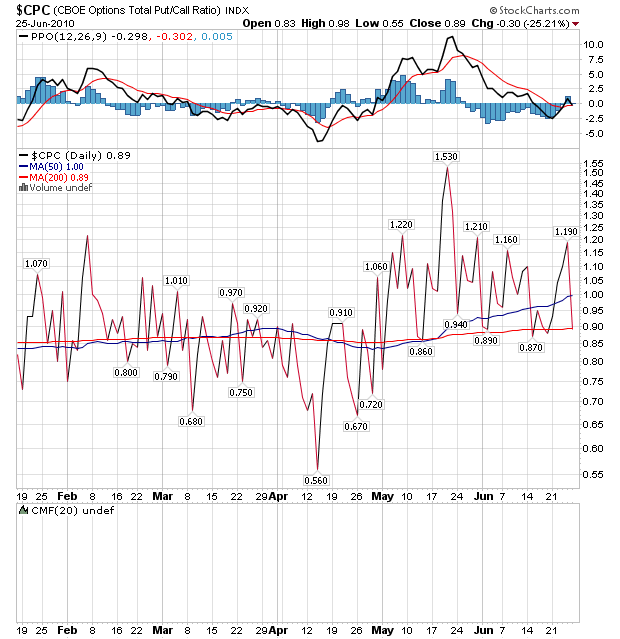 2010/06/26 - Newジェントルマンさんの株式ブログ。タイトル:「やっぱりNYは怪しい」 本文:昨夜のNYでCPCレシオがコール買いに突然変わっている。 G20を乗り切り、来週から意外高を起こそうとしているのではないか?