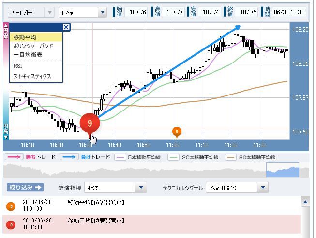 10分、30分足で中期線を値が上抜けていく買いシグナルってやつですね。