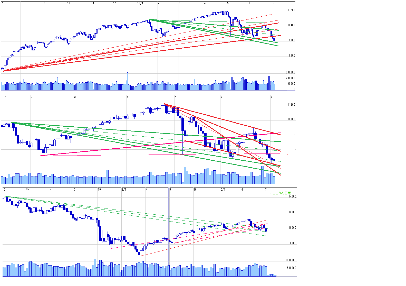 2010/07/04 - 月とスッポンさんの株式ブログ。タイトル:「来週のチャートポイント☆NY①」 本文:(1~3)ダウ 日経編はこちら http://minkabu.jp/blog/show/251898