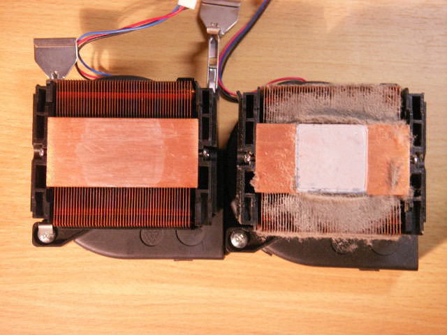 写真1:デスクトップパソコンのCPUファンにひどく溜まったホコリの様子