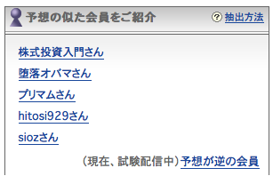 私は自分の持ち株全部picksしているんで出来にゃいんだけど、ポイントだけを狙おうと思えば潰れそうな銘柄だけを思いっきり強気で売り予想すればいいにゃ。