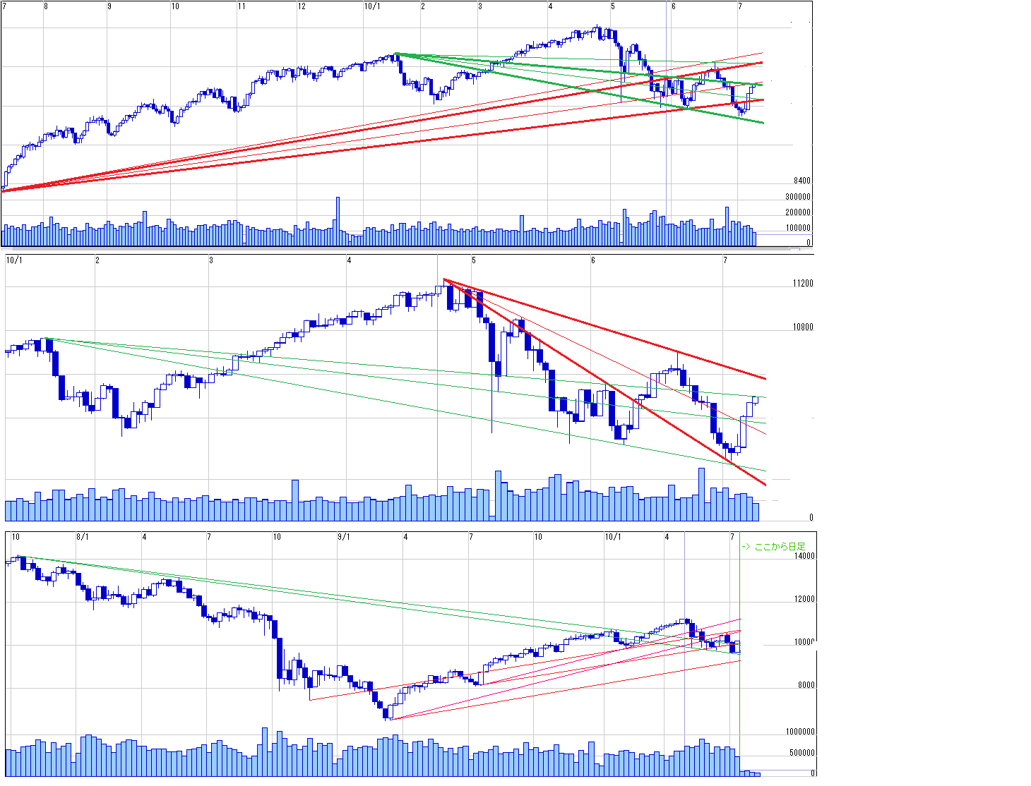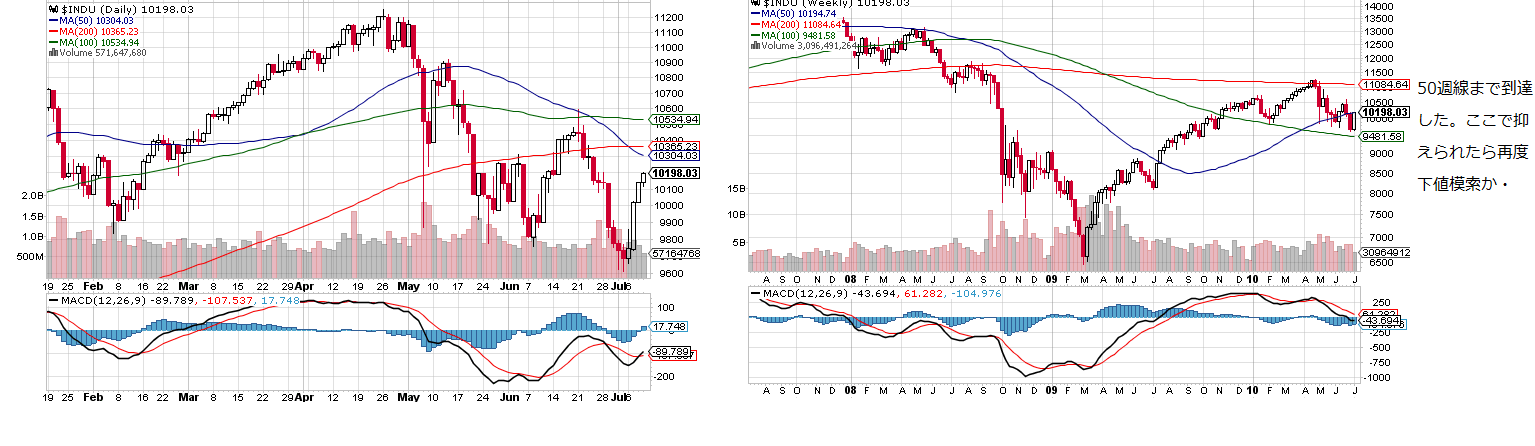 2010/07/10 - 月とスッポンさんの株式ブログ。タイトル:「7/12~ 来週のチャートポイント☆NY編①」 本文:ダウ (1)トレンドライン、ファンライン (2)移動平均線 (3)ボリバン 日経編はこちら http://minkabu.jp/blog/show/253908