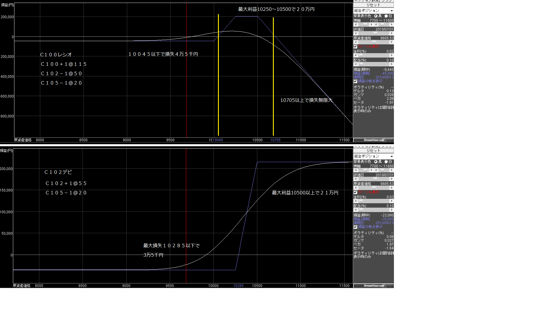 上値が重いのだけど、ブラックスワンに備えて、掛け捨てで許容できる範囲のコールを組みたいと考えてみました。