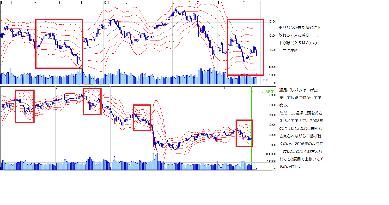 2010/07/17 - 月とスッポンさんの株式ブログ。タイトル:「7/21~ 来週のチャートポイント②」 本文:1.ボリバン 2.一目 3.月足 その他のテクニカルはこちらも参照 http://minkabu.jp/blog/show/255969 ①はこちら
