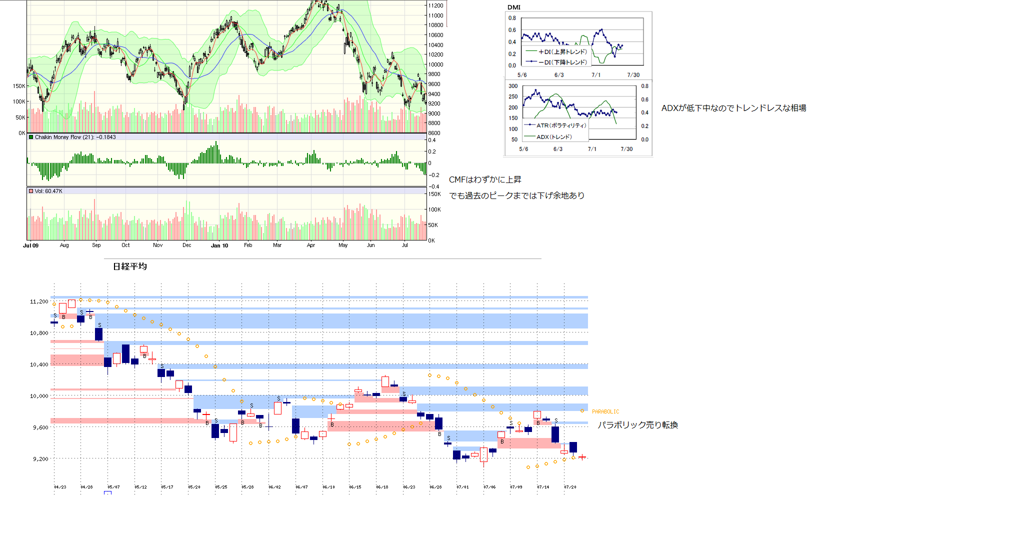 2010/07/22 - 月とスッポンさんの株式ブログ。タイトル:「7/22本日のチャート②」 本文:1、債券と分足の記録(夕場終了後にアップします) 2.CMF,DMI,窓 ☆気になるニュースまとめ