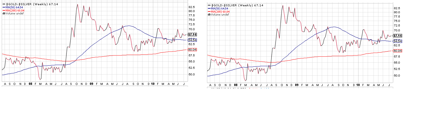 金に対して銀価格が大幅に安くなり始めると、金融恐慌が進み、株価は下落し、金の短期トレンドは変化する。その数値はGSR(ゴールド・シルバー・レシオ)と呼ばれ、ここ数日で銀が大暴落したことから、54→61.8まで急上昇した。金に強い買いシグナル、NYダウに売りシグナルが出ている。過去100年のデータでは、銀が金に対して割高な時は、景気が良く、銀が割安な時は、銀行の破綻が増加している。GSRが100に近づくにつれて、金融危機は激しさを増す。NYダウのチャートにも兆候が見られますが、株の大暴落が8~10月のどこかである危険性が高まっていると思えます。というのも、今回、GSRの短期急騰幅は、昨年8月のサブプライムショック時や今年3月のベアースタンズ証券救済時の上昇幅をはるかに超える急騰ぶりなのです。そして昨日、NYダウは前日比130.84ドル安の11348.55ドル、NY金は前日比11.1ドル高の816.8ドル。金は不思議なことに、いつも上昇を支える限界トレンドラインぎりぎりまで下げ、その後、急反発をし続ける動きを、この8年間繰り返し続けている。