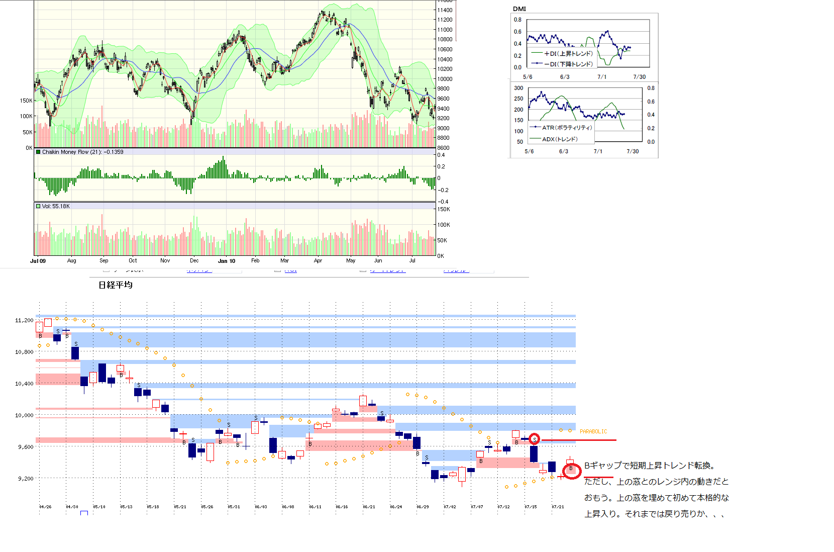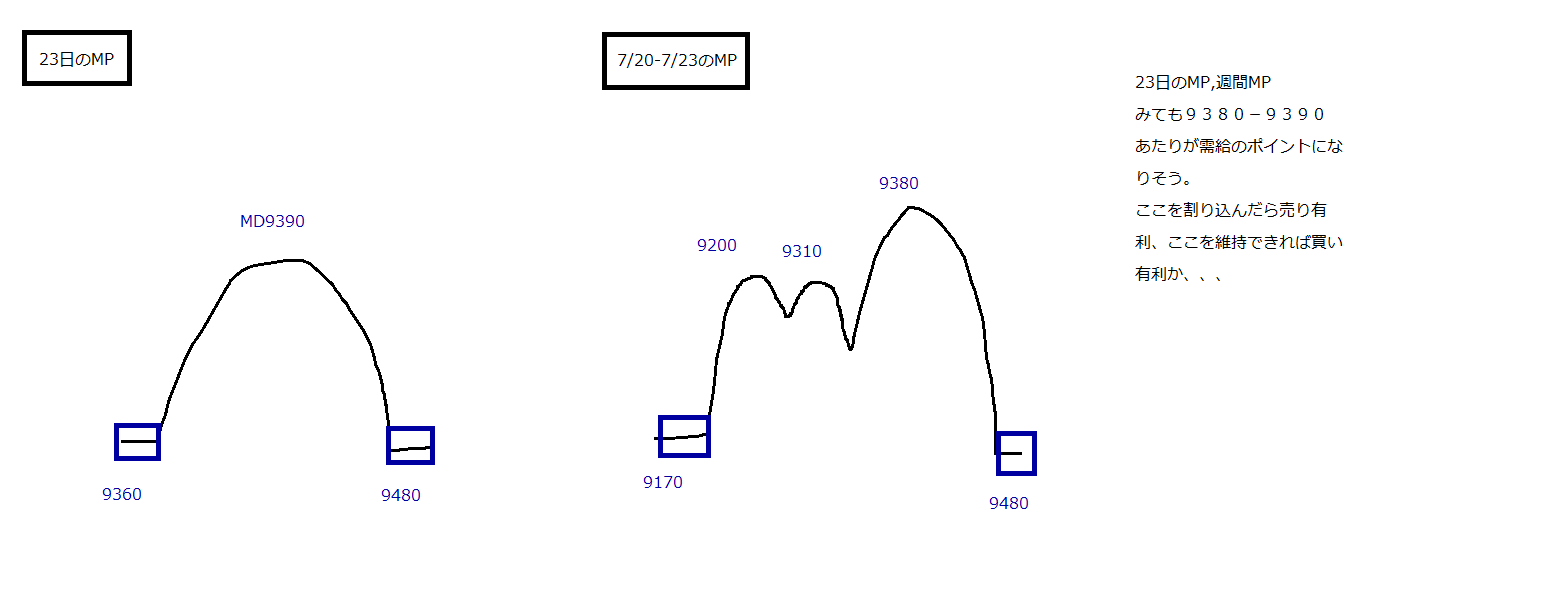 2010/07/23 - 月とスッポンさんの株式ブログ。タイトル:「7/23 本日のチャート①」 本文:1、本日のMPと週間MP 2、先週のMP 上値の参考として。