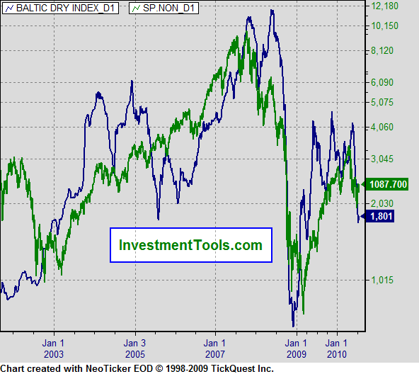 2010/07/25 - Newジェントルマンさんの株式ブログ。タイトル:「これも危ない」 本文:バルチック指数が急落中である。 バルチック指数とは「ばら積み船運賃の総合指数」のこと。つまり船による荷物の動きが乏しくなってきていることを示す。これは経済活動の停滞を示す。