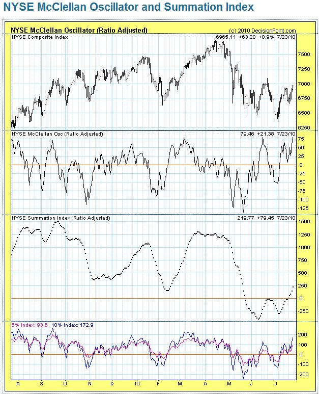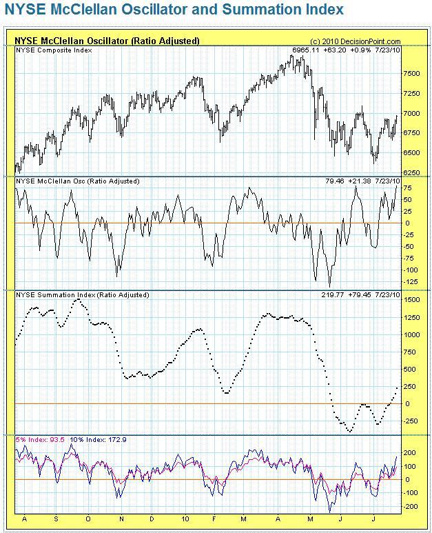2010/07/25 - Newジェントルマンさんの株式ブログ。タイトル:「これも危険」 本文:NYのMcClellan Oscillatorもかなり高水準にあり、いつ落ちてもおかしくない。 NYダウはテクニカル分析でも「見切り売り」で$1000以上の下落が起き得るとの結果が出ている。