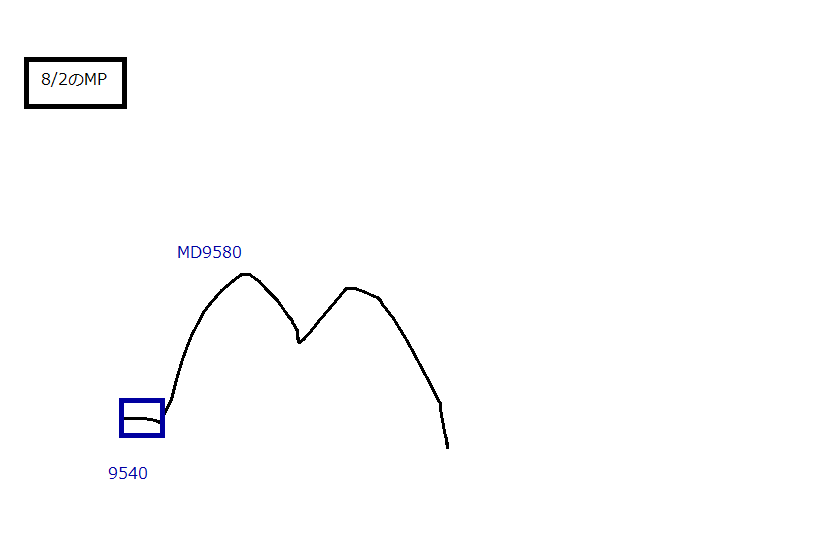 ただ、今日の高値9680は上の山9690で押さえられた。