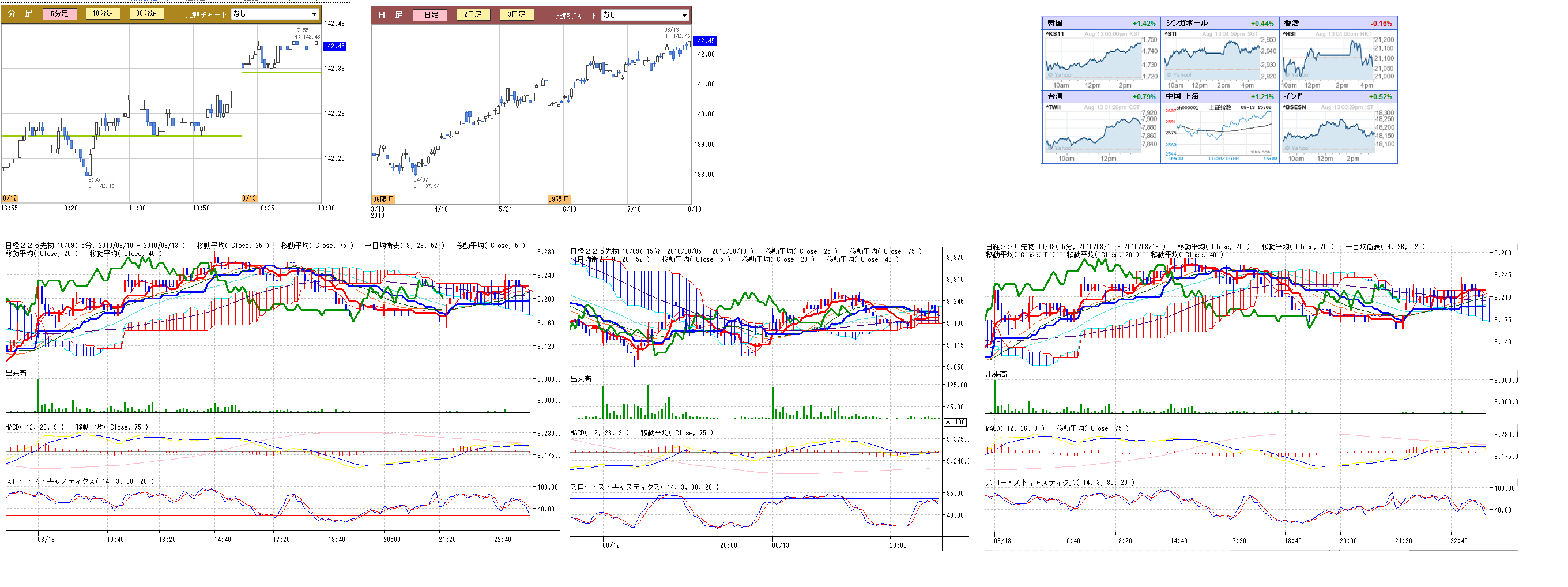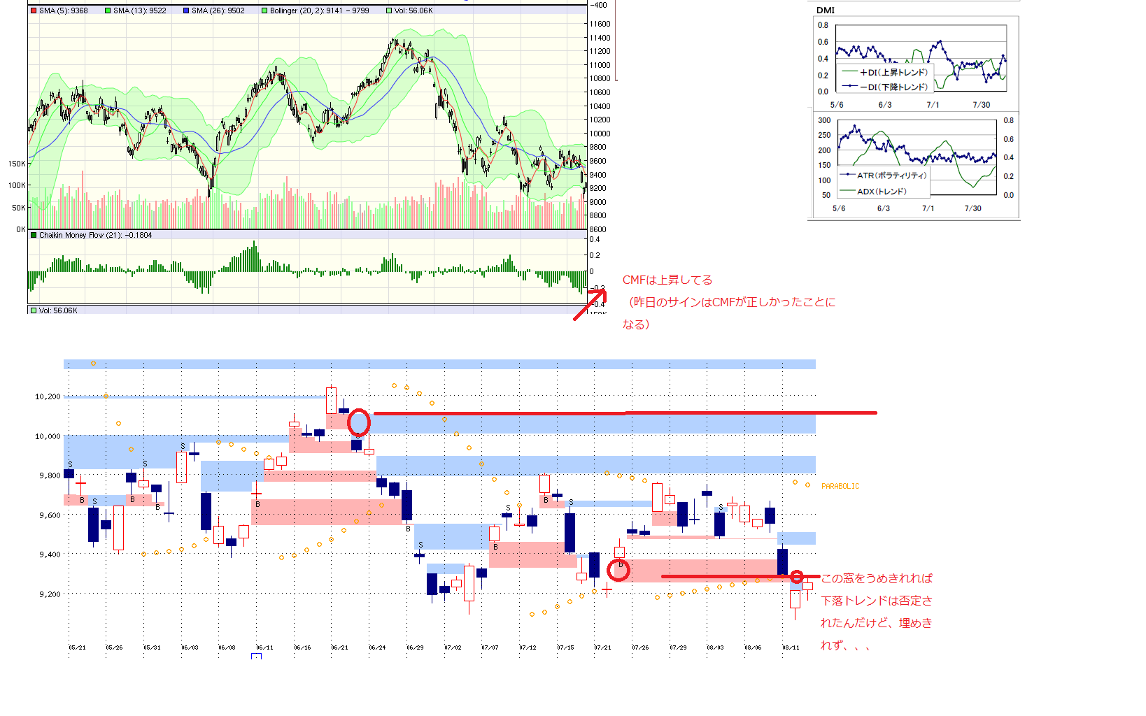 2010/08/16 - 月とスッポンさんの株式ブログ。タイトル:「8/13 本日のチャート」 本文:旅行にいってたので先週分もまとめてかきます 1、MP 2、CMF 3、分足
