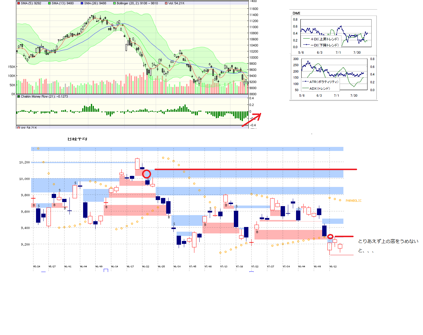2010/08/16 - 月とスッポンさんの株式ブログ。タイトル:「8/16 本日のチャート①」 本文:1、MP 2.先週のMP 3.CMF