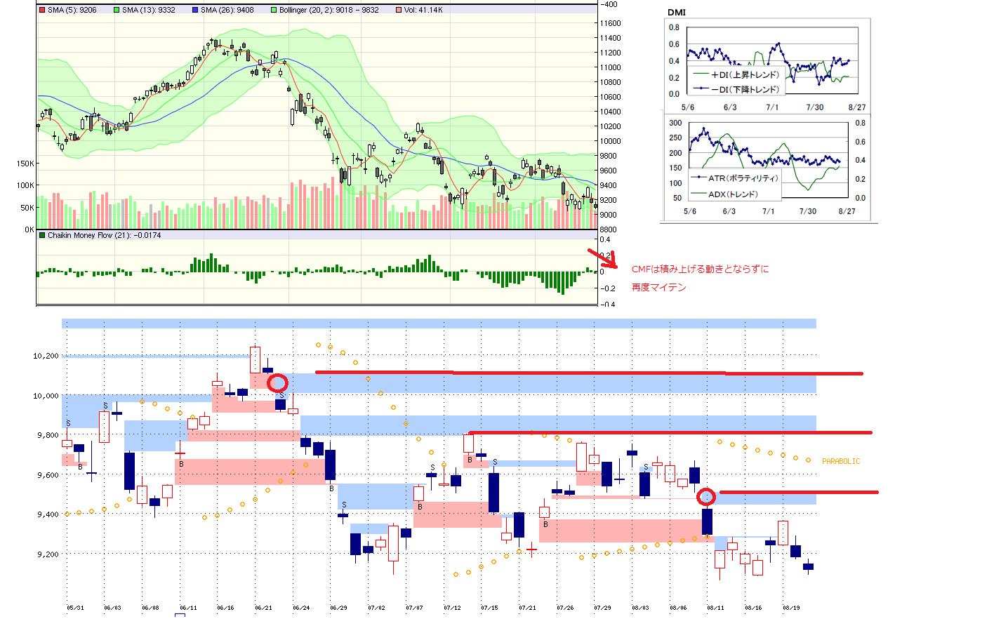 2010/08/23 - 月とスッポンさんの株式ブログ。タイトル:「8/23 本日のチャート①」 本文:1.本日のMP 2.先週のMP 3.CMF,DMI,窓 ニュースまとめは後ほど、、、