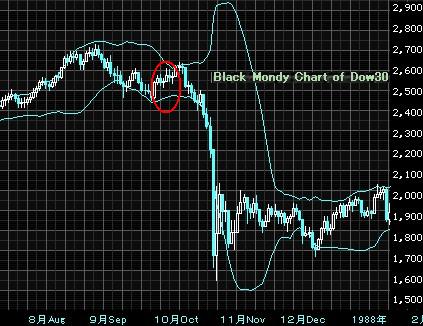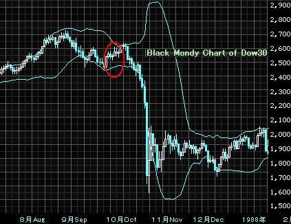 2010/08/28 - Newジェントルマンさんの株式ブログ。タイトル:「ブラックマンデーの再現は?」 本文:今回の上げは添付の図の赤丸の部分と見えなくもないが・・・ Hindenburg Omenサインから41日以内に暴落が来る確率が高いようだが、1回目のOmenサインから41日目は9月21日である。