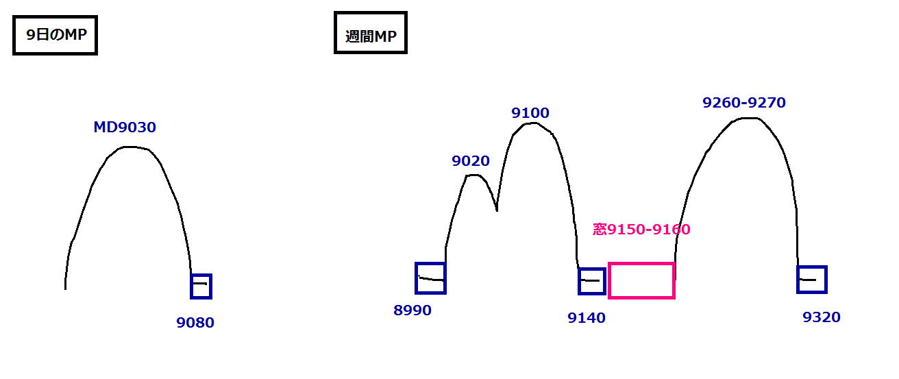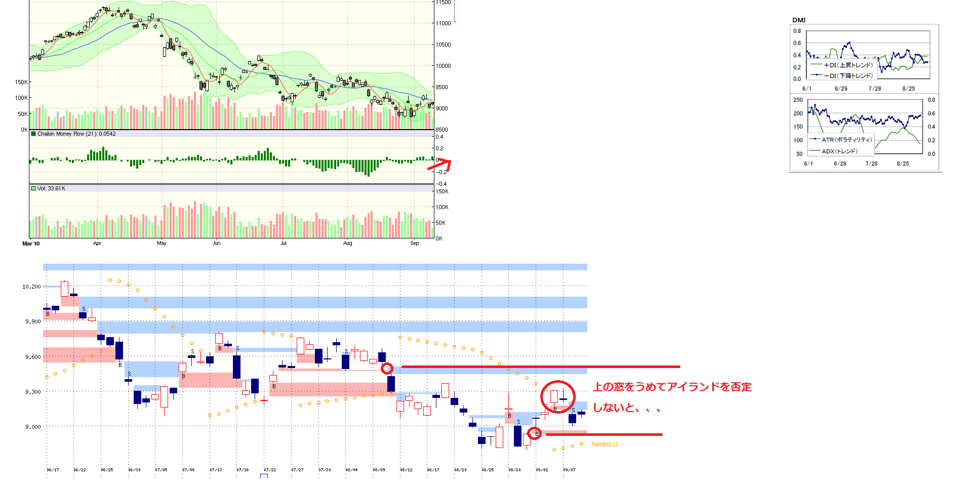 2010/09/09 - 月とスッポンさんの株式ブログ。タイトル:「9/9 本日のチャート①」 本文:1、本日のMPと週間MP 2.先週のMP 3.CMF,DMI,窓