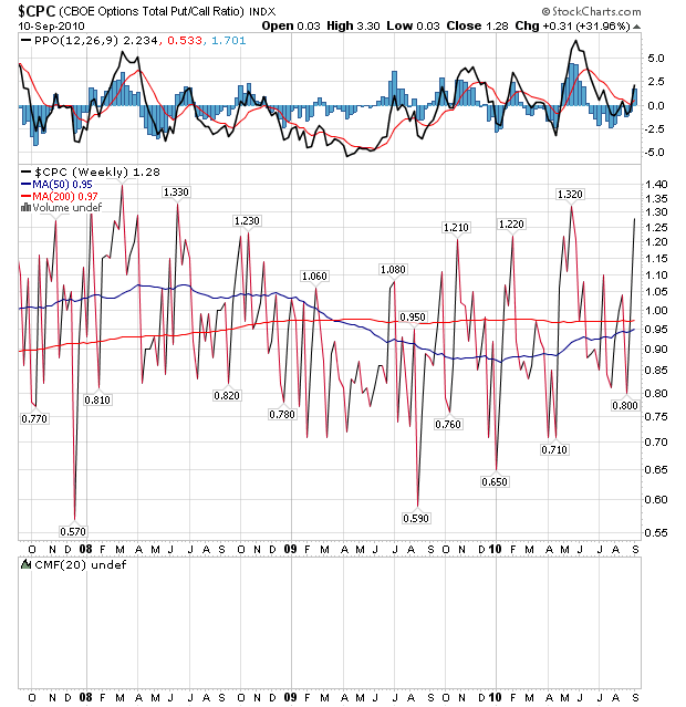日足、週足ともCPC(PUT/CALLレシオ)が異常に高騰している。つまりPUT買いが増えている。