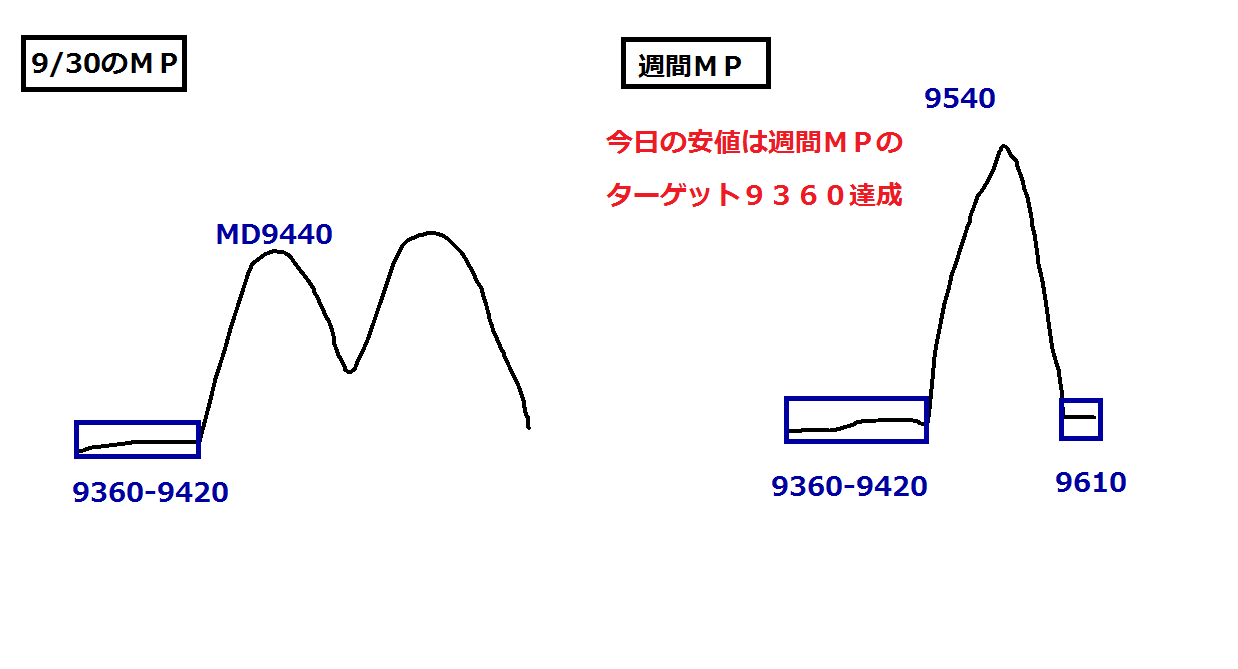 2010/09/30 - 月とスッポンさんの株式ブログ。タイトル:「9/30 本日のチャート①」 本文:1、本日のMP 週間MPの下方ターゲット達成 2、先週のMP 3.CMI,DMI,窓 ☆相場雑感 このところクレディのドテン売買が続いてる。