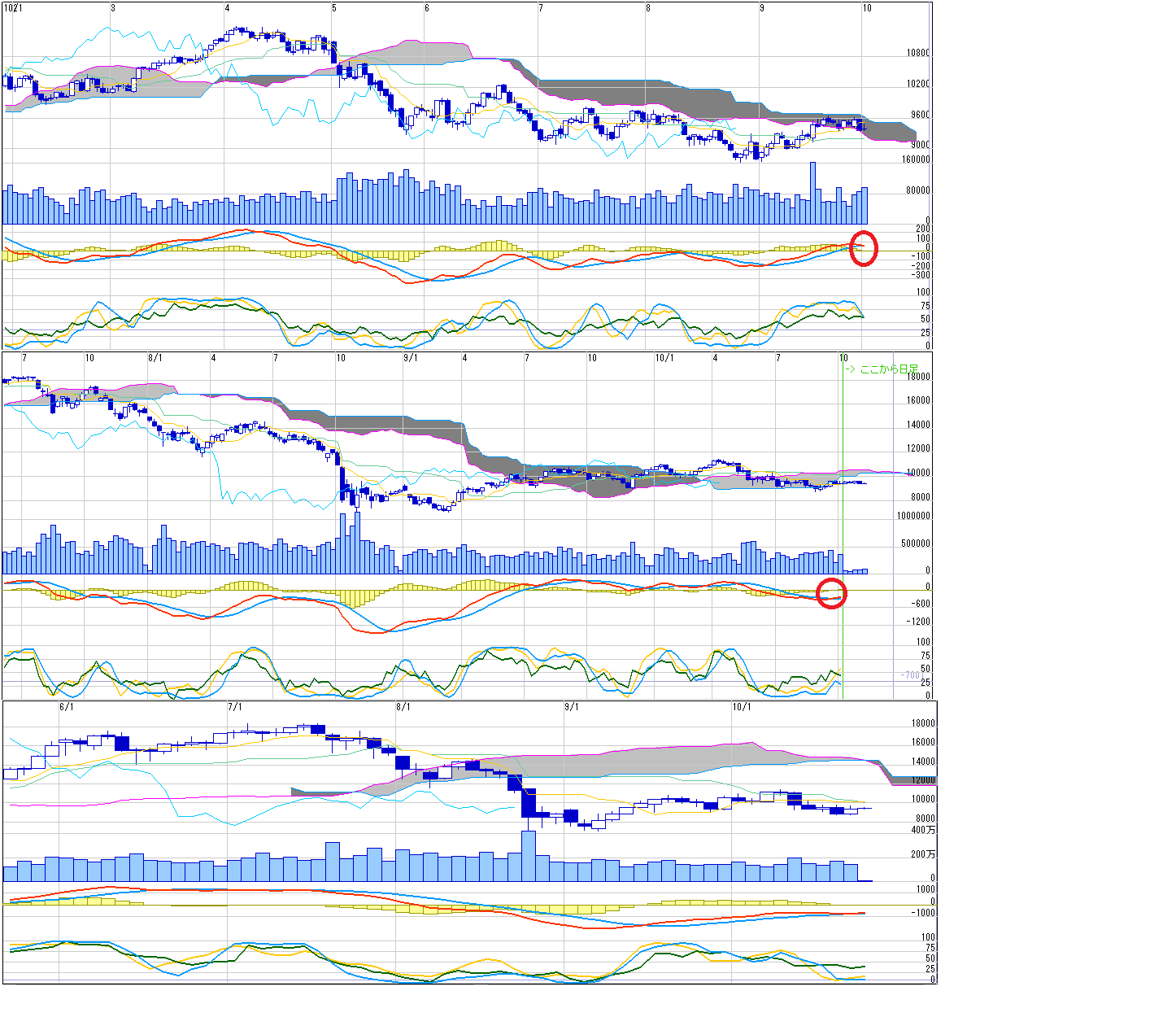 2010/10/03 - 月とスッポンさんの株式ブログ。タイトル:「10/4~ 来週のチャートポイント①」 本文:1、トレンドライン、ファンライン 2.ボリバン 3.一目