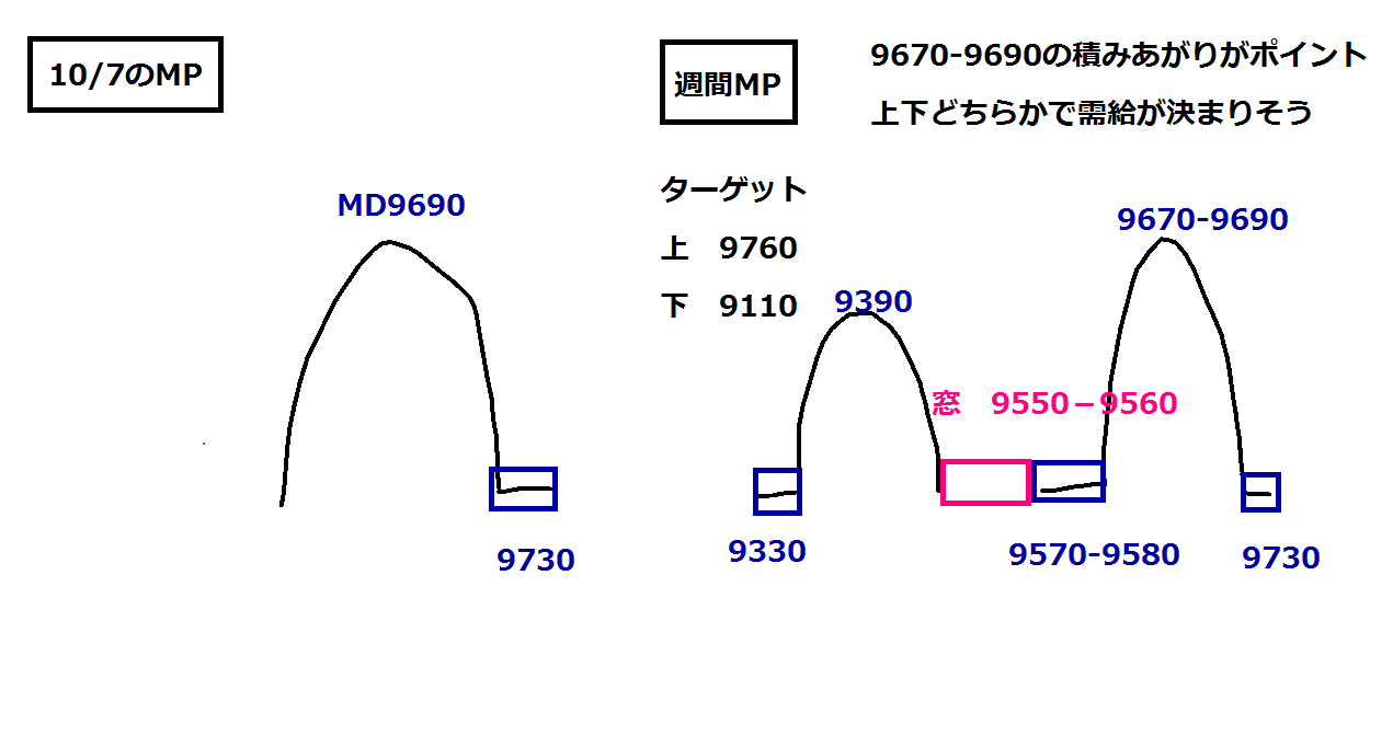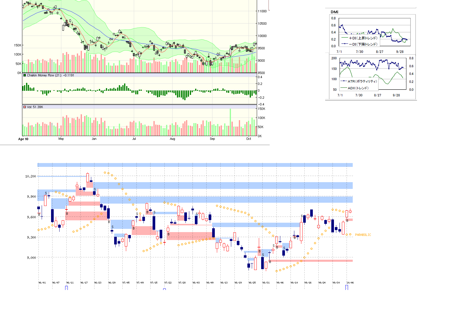 2010/10/07 - 月とスッポンさんの株式ブログ。タイトル:「10/7 本日のチャート①」 本文:1、MP 2、先週のMP 3、CMF,DMI、窓