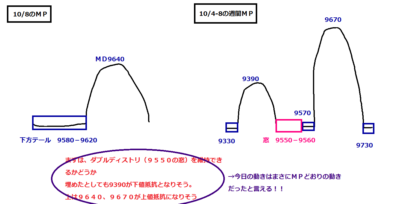 ⇒今日の安値・高値とも、先週のMPが意識されたようです。