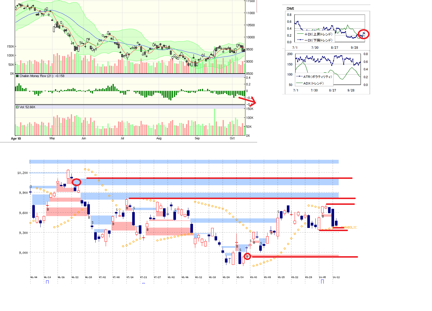 2010/10/13 - 月とスッポンさんの株式ブログ。タイトル:「10/13 本日のチャート①」 本文:1、本日のMP 2.先週のMP 3、cmf、DMI,窓