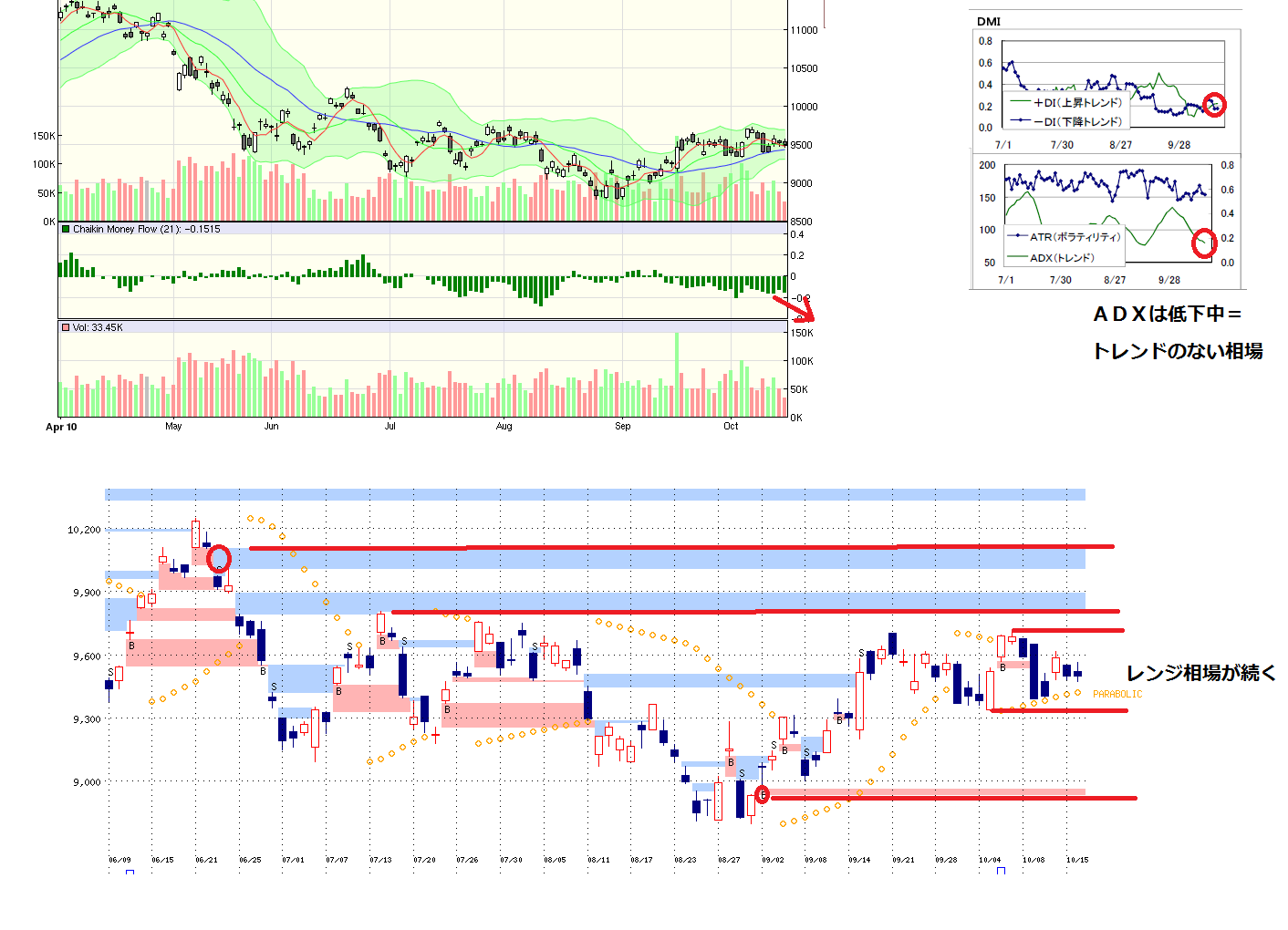 2010/10/18 - 月とスッポンさんの株式ブログ。タイトル:「10/18 本日のチャート①」 本文:1、本日のMP 2、先週のMP 3.CMF.DMI,窓
