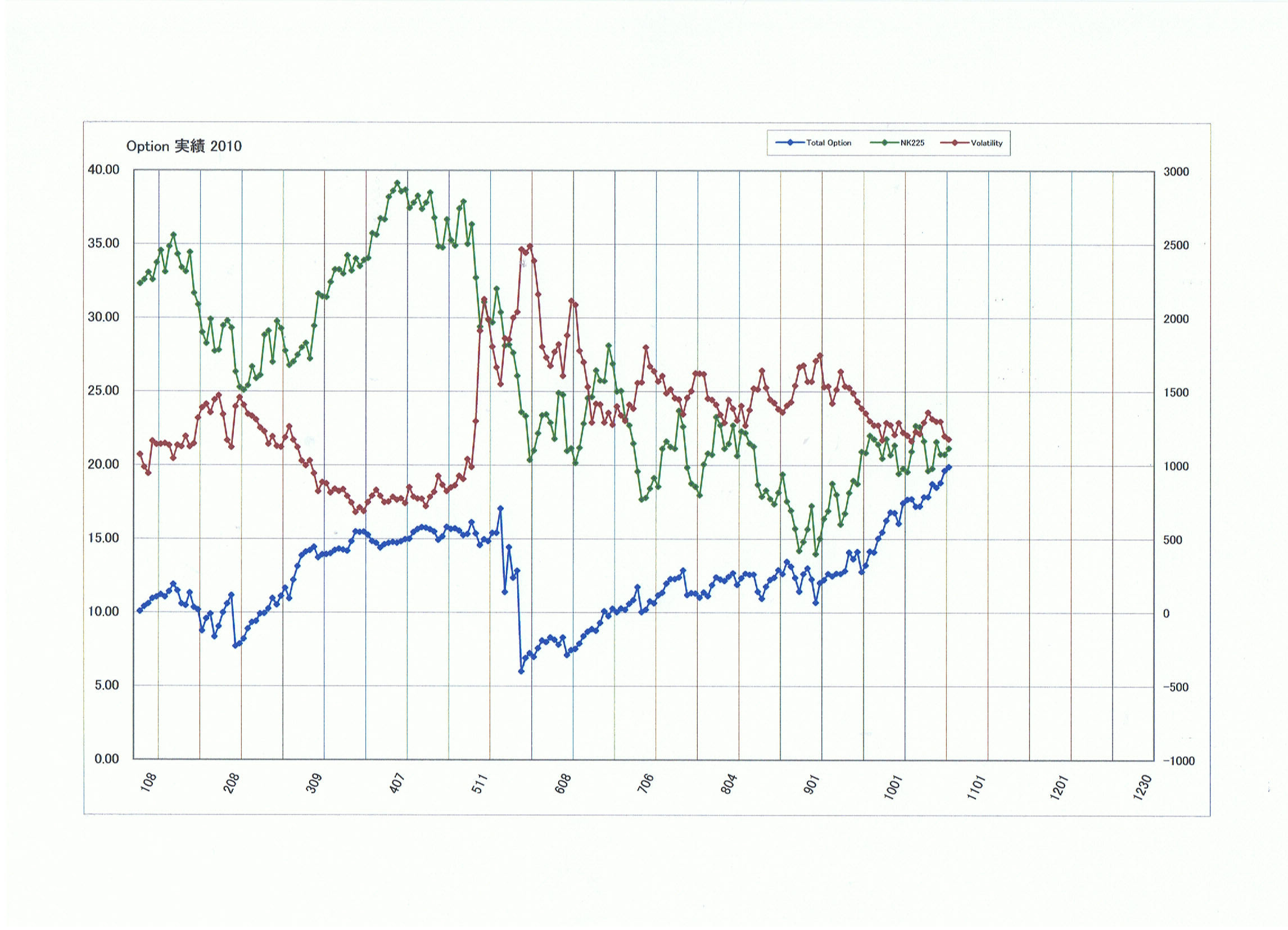 2010/10/20 - ISAC.WaKSさんの株式ブログ。タイトル:「オプション取引の実績公開」 本文:自らの反省を込めて今年のオプション取引の実績を公開します。 基本的には次の2点を守ります。 1. ショート(売り)のストラングル。CallとPullの併せ売り。 2. デルタニュートラルの維持。