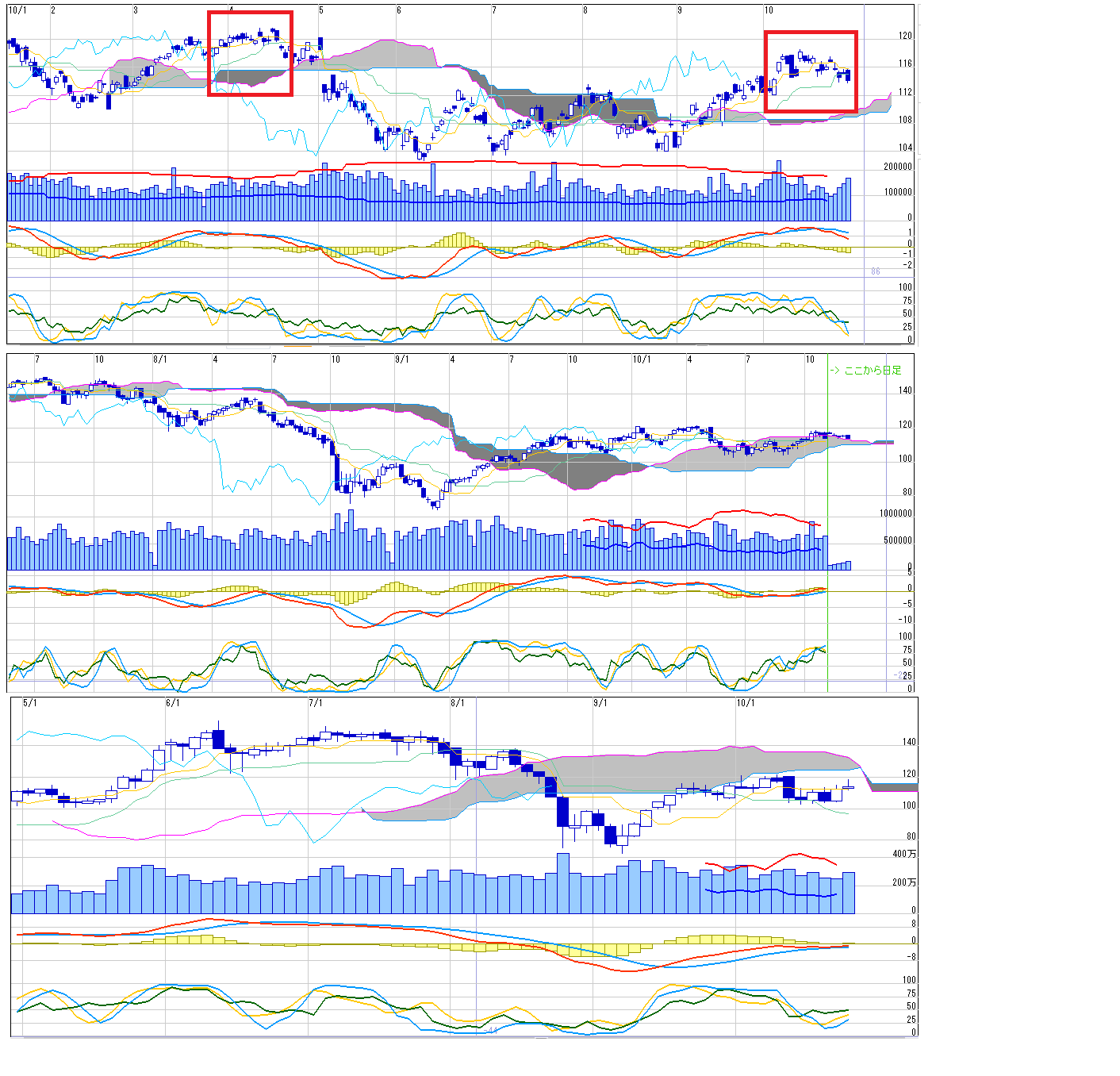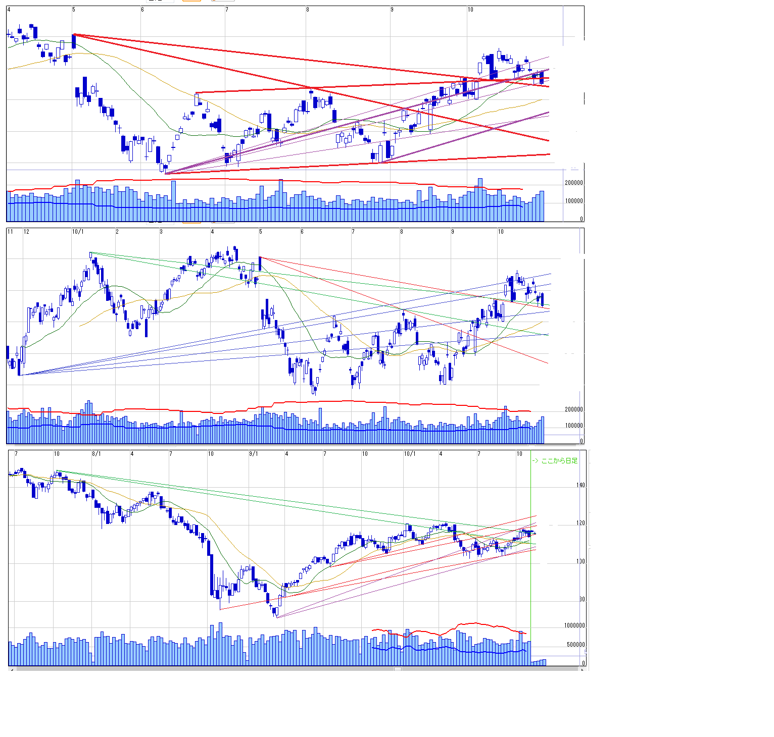 2010/10/30 - 月とスッポンさんの株式ブログ。タイトル:「11/1~ 来週のチャートポイント②」 本文:1.日経ドル建てトレンドライン、ファンライン 2、ボリバン 3、一目 ①はこちら http://minkabu.jp/blog/show/284450