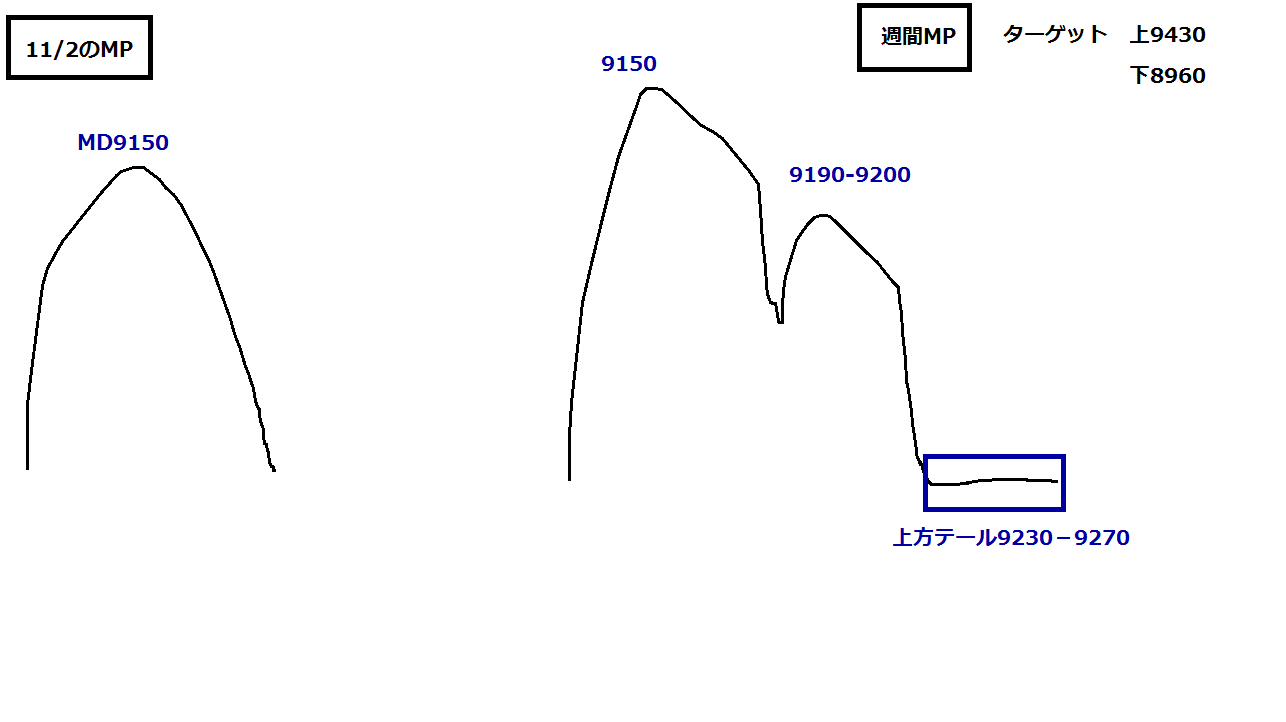 →MDの上でひけてる(終値9170 MD9150)。木曜は、とりあえずMDの上下どちらで寄り付くかで決まりそう