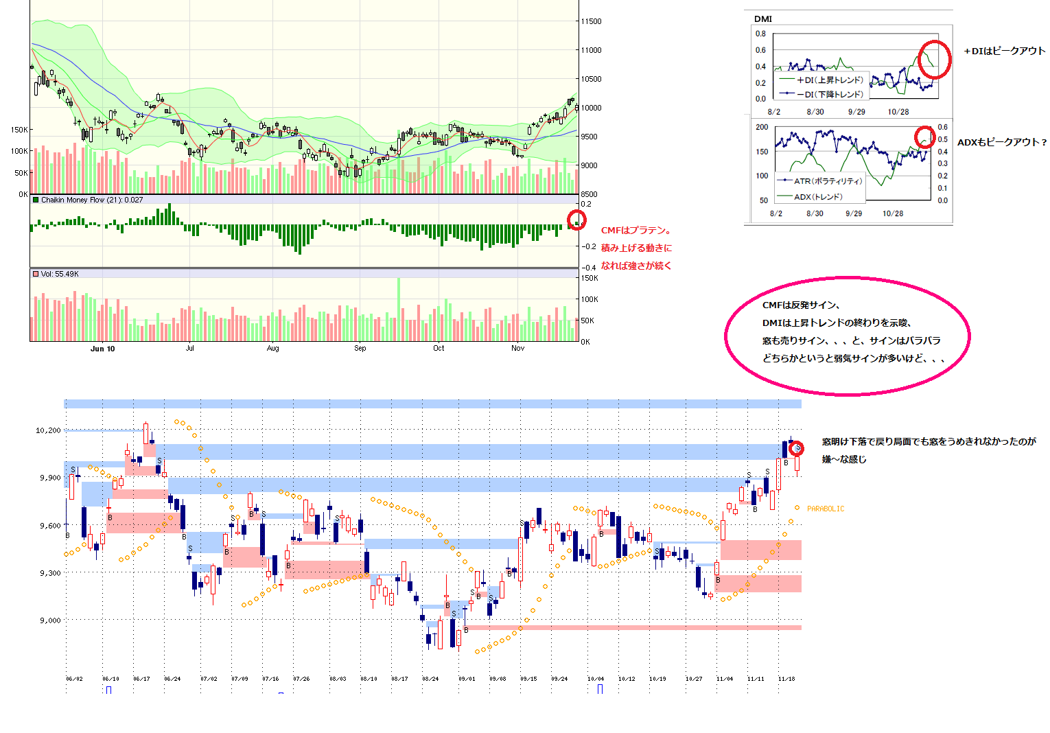 ・寄りがCMEより高いときは、寄り高すぎ~と思わせて売り集めて上昇ってパターンが多い(15日の上昇も、17日の上昇も、CMEより高かった。なので、CME安値で買おうとしてた人や寄り高い、、、と思って売った人が結果踏まれるハメに)