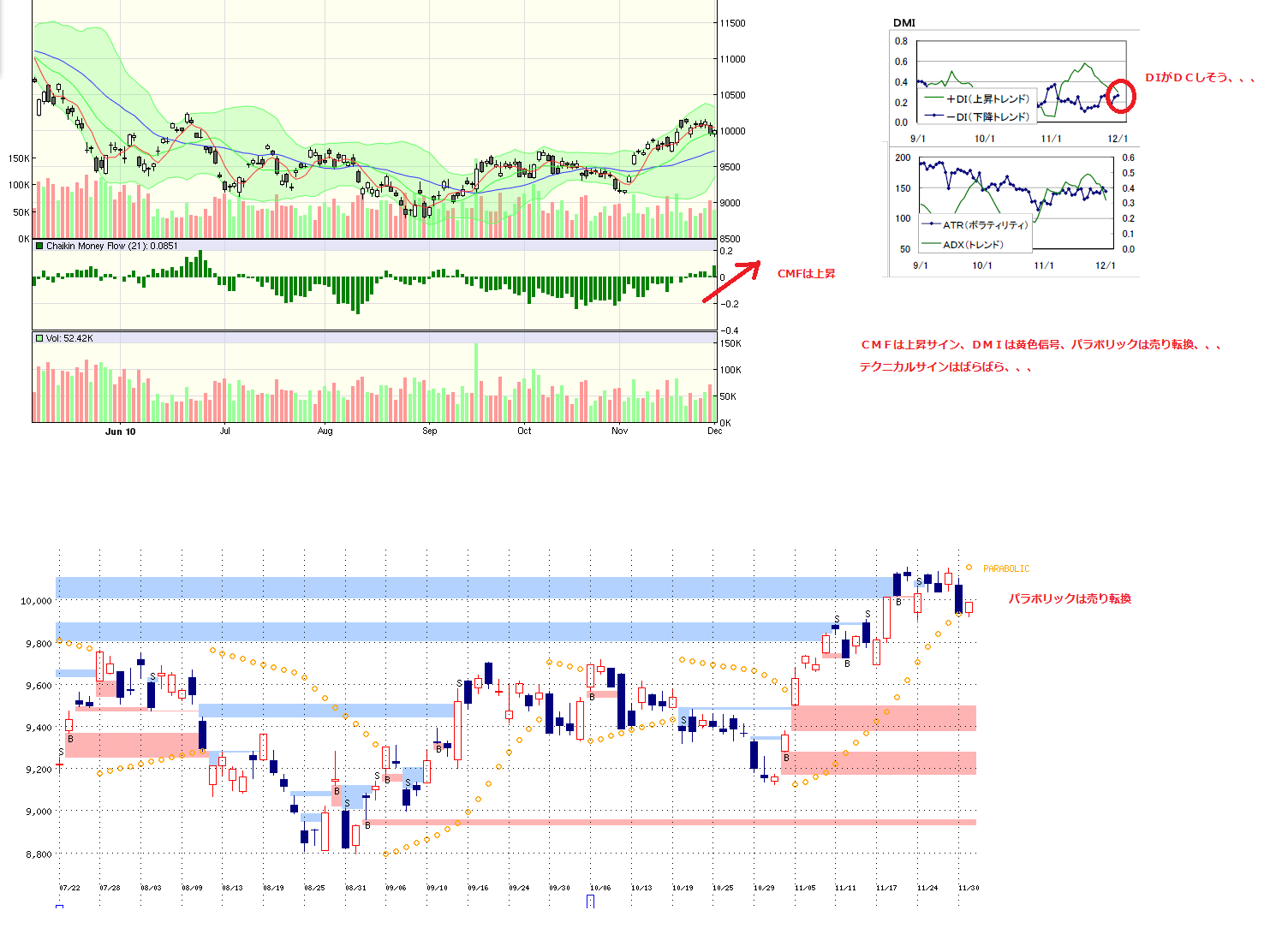2010/12/01 - 月とスッポンさんの株式ブログ。タイトル:「12/1 本日のチャート①」 本文:1.MP 2.先週のMP 3.cmf、DMI,窓 ☆相場雑感 ・昨日感じた違和感 >・12・2 ECB理事会 →何か対策が出るか?