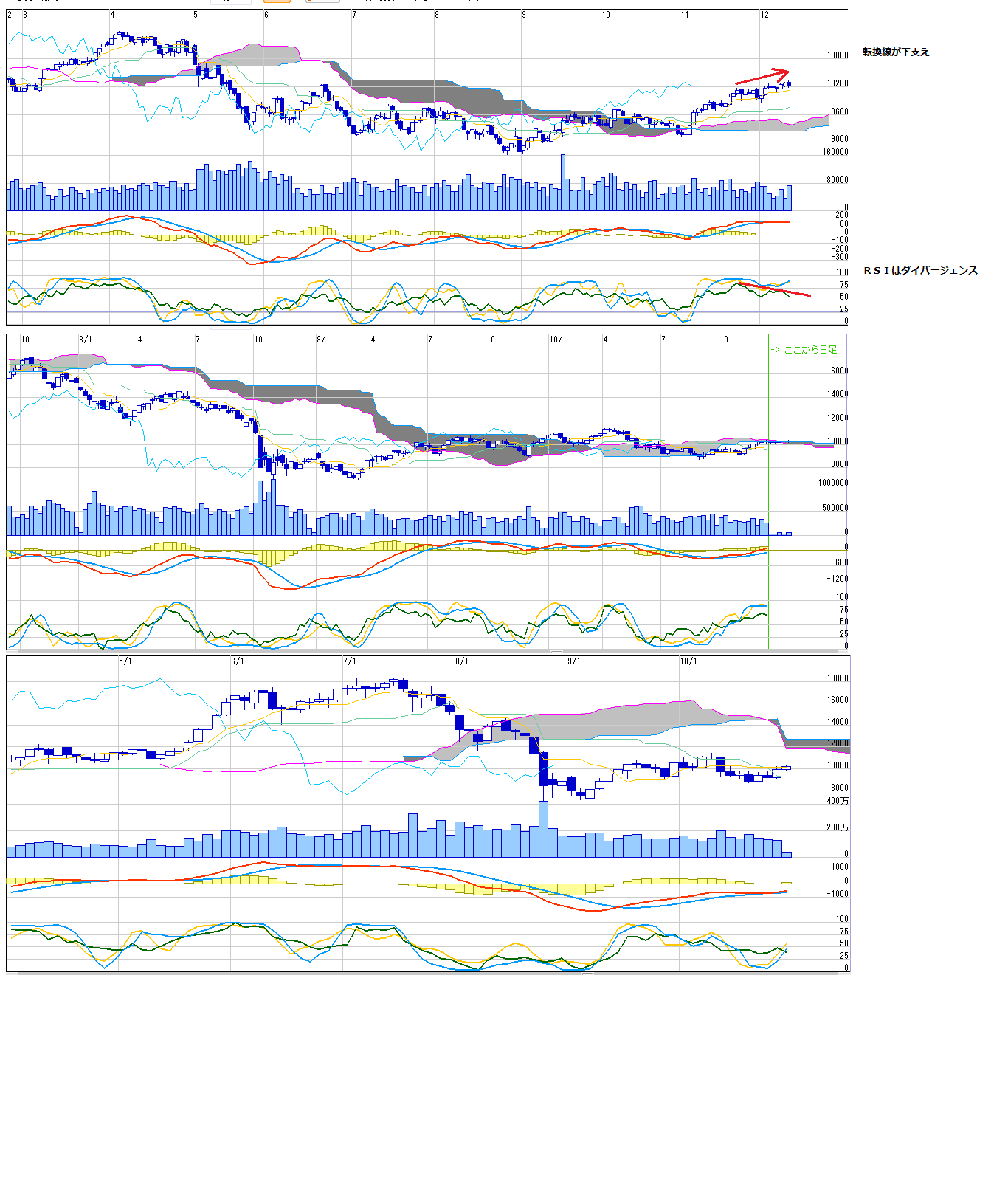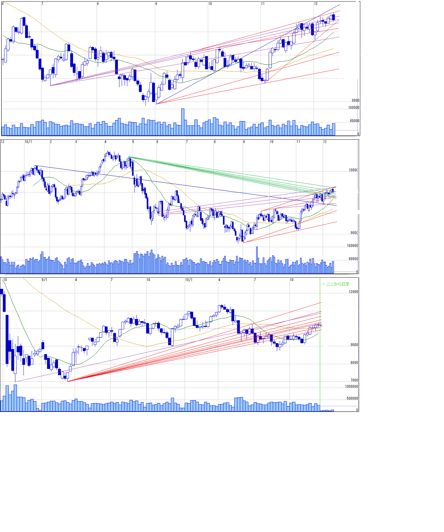 2010/12/12 - 月とスッポンさんの株式ブログ。タイトル:「12/13~ 来週のチャートポイント①」 本文:1~3 日経先物 ☆時間がないので詳細省略 ☆後ほど追記するかもです