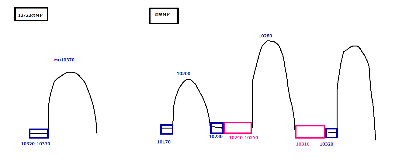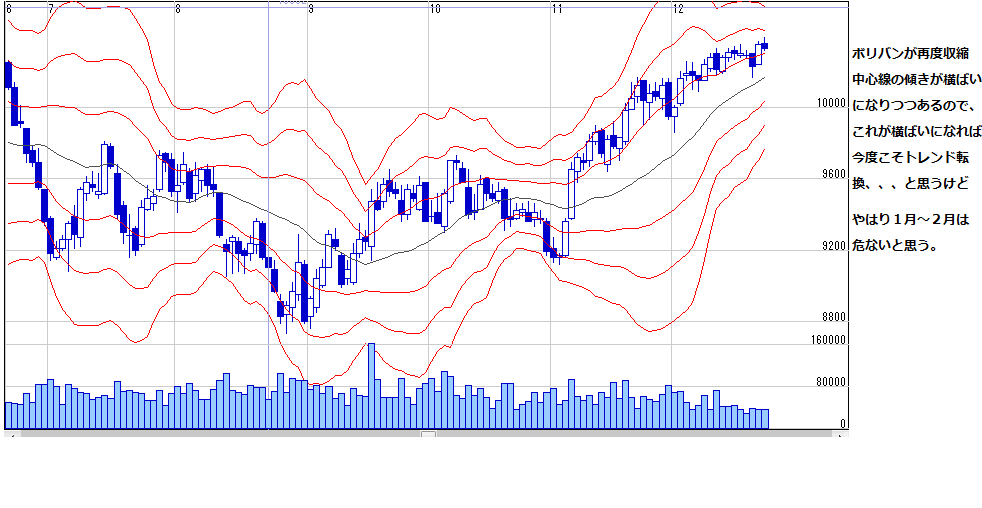2010/12/22 - 月とスッポンさんの株式ブログ。タイトル:「12/22 本日のチャート①」 本文:1.MP 2.先週のMP 3.ボリバン ☆相場雑感 ・CS、ニューエッジのドテン売買に振り回される毎日 月曜売り→火曜買い→水曜売り→金曜???