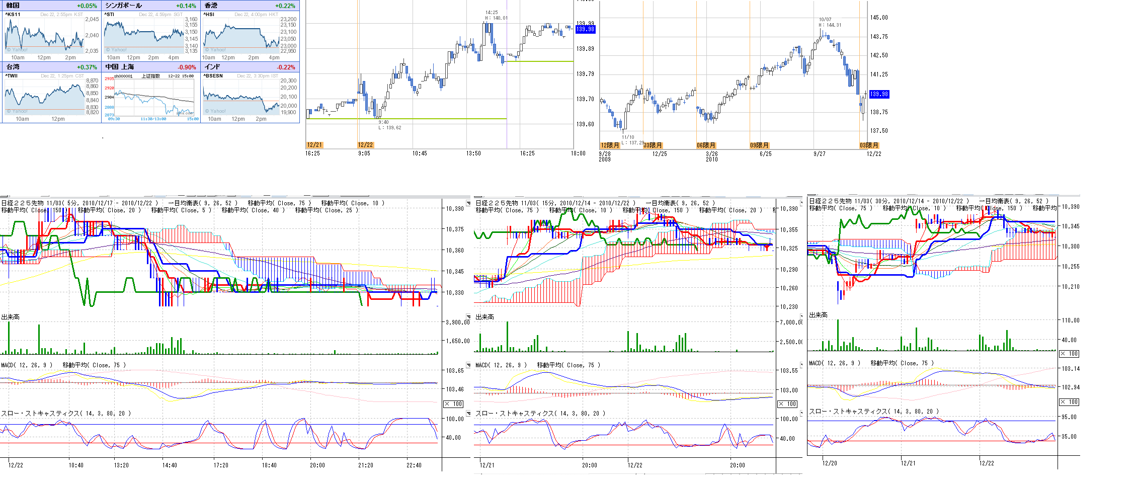 2010/12/22 - 月とスッポンさんの株式ブログ。タイトル:「12/22 本日のチャート②」 本文:1.分足と債券の記録 2.CMF,DMI,窓 ☆ニュース ・2011年のブラックスワン http://pragcap.com/the-black-swans-of-2011