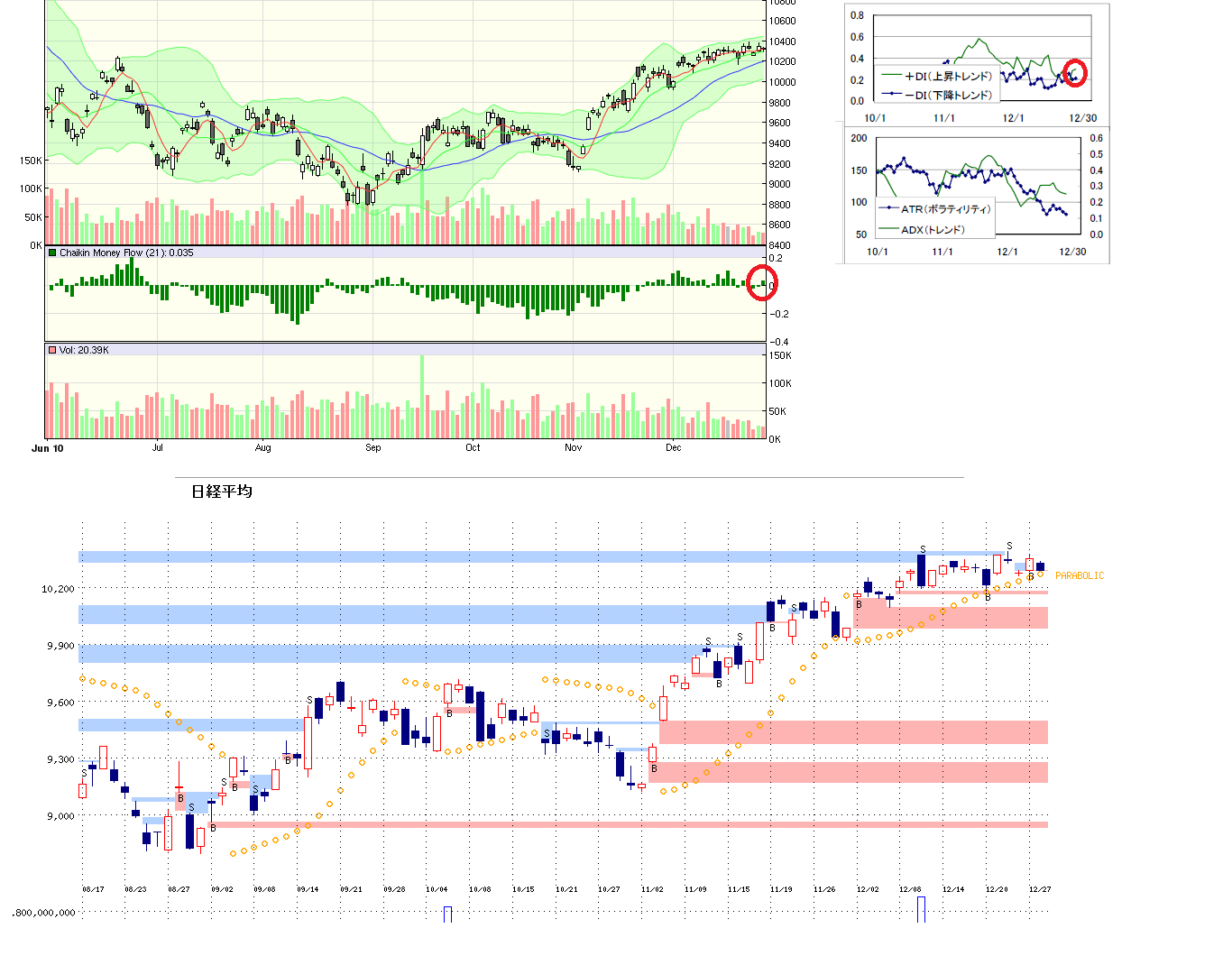 2010/12/28 - 月とスッポンさんの株式ブログ。タイトル:「12/28 本日のチャート①」 本文:1、MP 2.先週のMP 3.CMF,DMI,窓