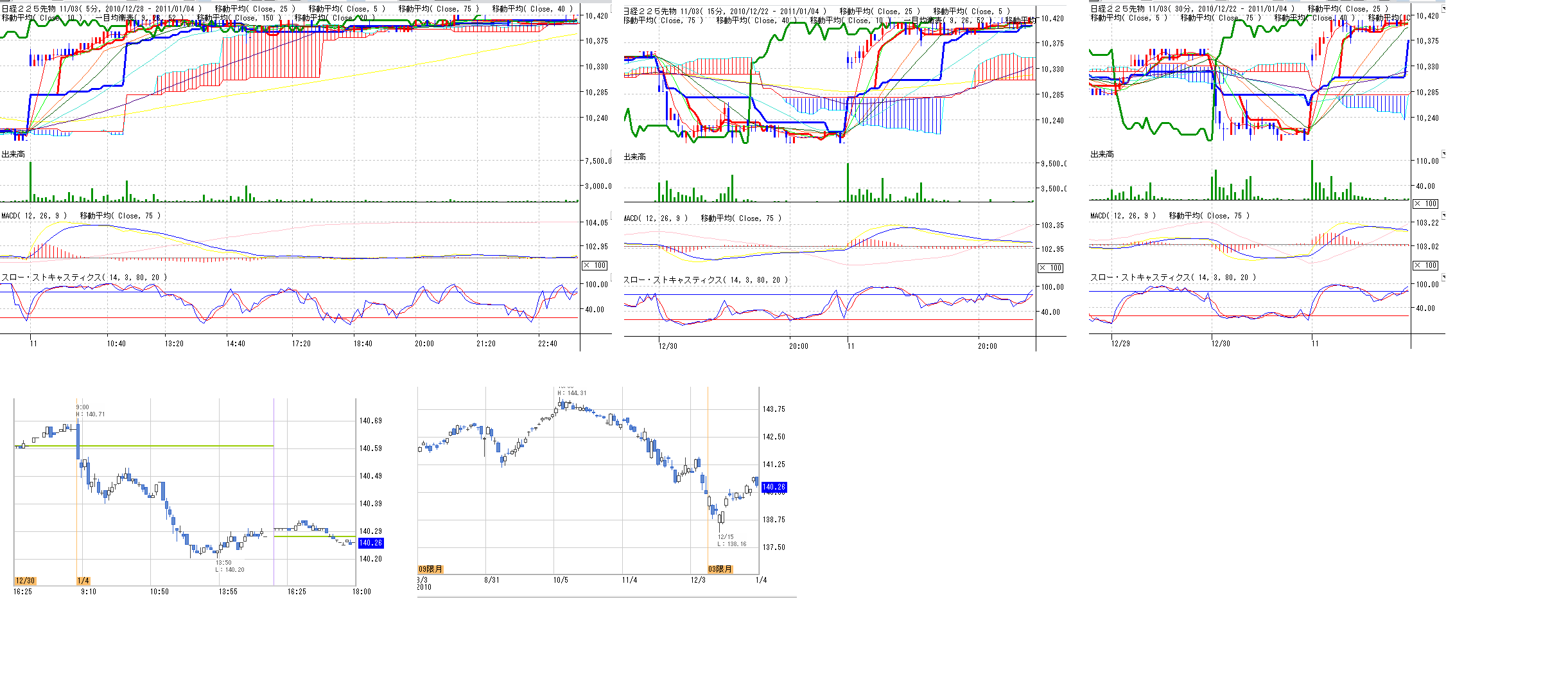 2011/01/05 - 月とスッポンさんの株式ブログ。タイトル:「1/4 本日のチャート②」 本文:あけましておめでとうございます。 皆様今年もよろしくお願いいたします。 画像 分足と債券の記録 ☆ニュース ・2011年のマーケットを考える