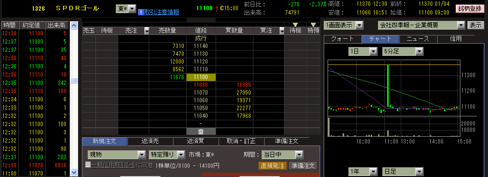 2011/01/05 - miyakenさんの株式ブログ。タイトル:「SPDRゴールド(1326)に波乱」 本文:後場の寄り付きに波乱がありました。 買ったヒトは、計240万円程度の損失となります。