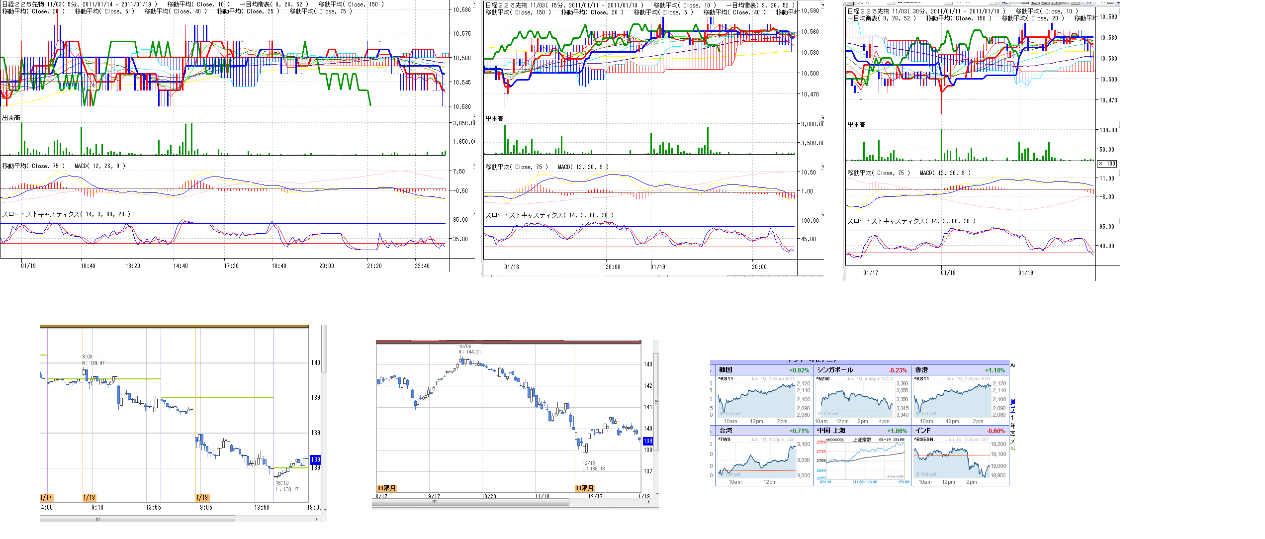 2011/01/19 - 月とスッポンさんの株式ブログ。タイトル:「1/19 本日のチャート②」 本文:画像 分足と債券の記録 ☆ニュース ・2011年の相場見通し(吉田さん) http://diamond.jp/articles/-/10798 ・13000まで上昇する