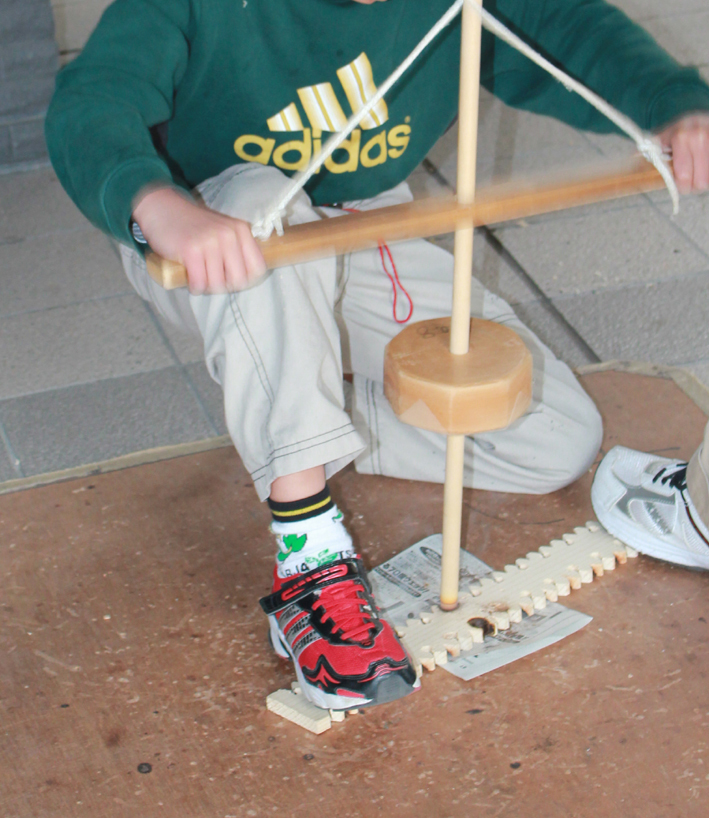 火おこしの道具を、最新式の工具で作ったりして・・・・・!