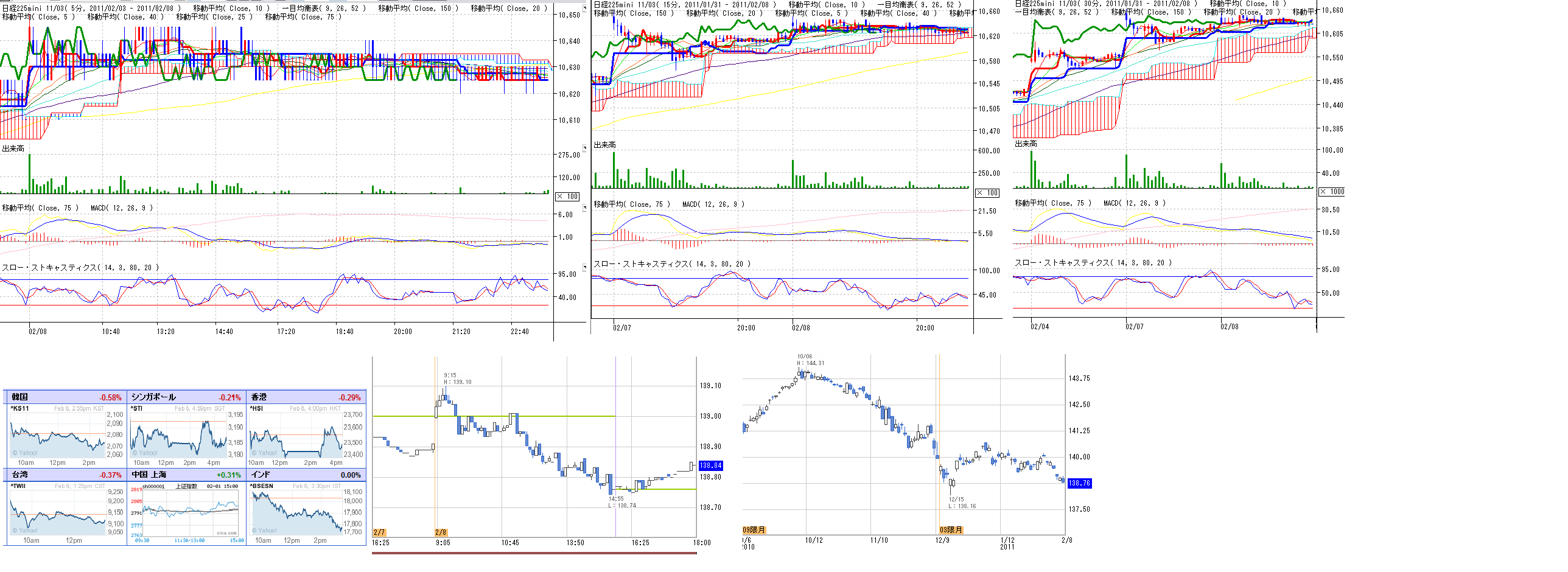 2011/02/08 - 月とスッポンさんの株式ブログ。タイトル:「2/8 本日のチャート②」 本文:画像 分足と債券の記録 ☆ニュース