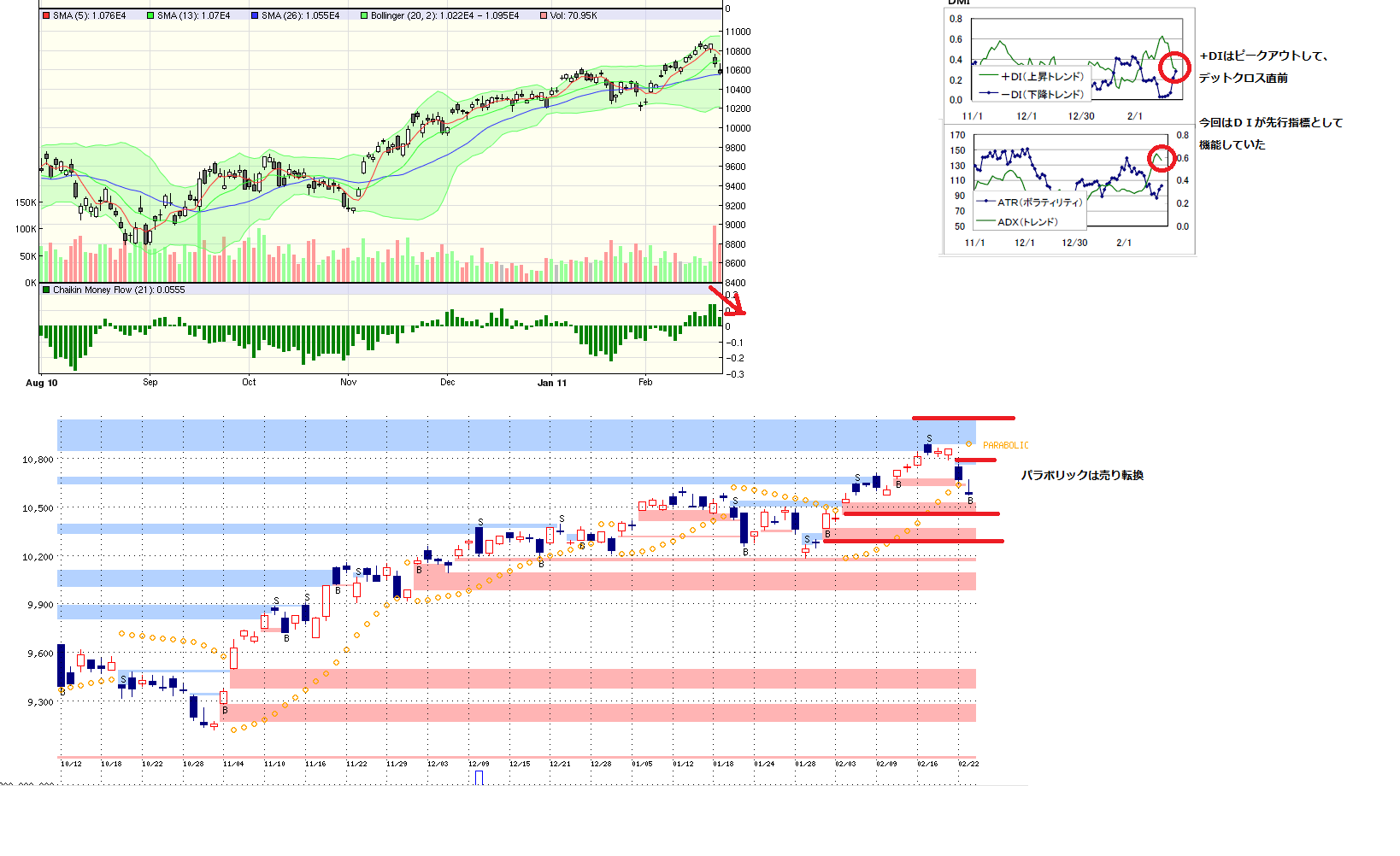 各自、週末の日記のトレンドライン下限3本と、