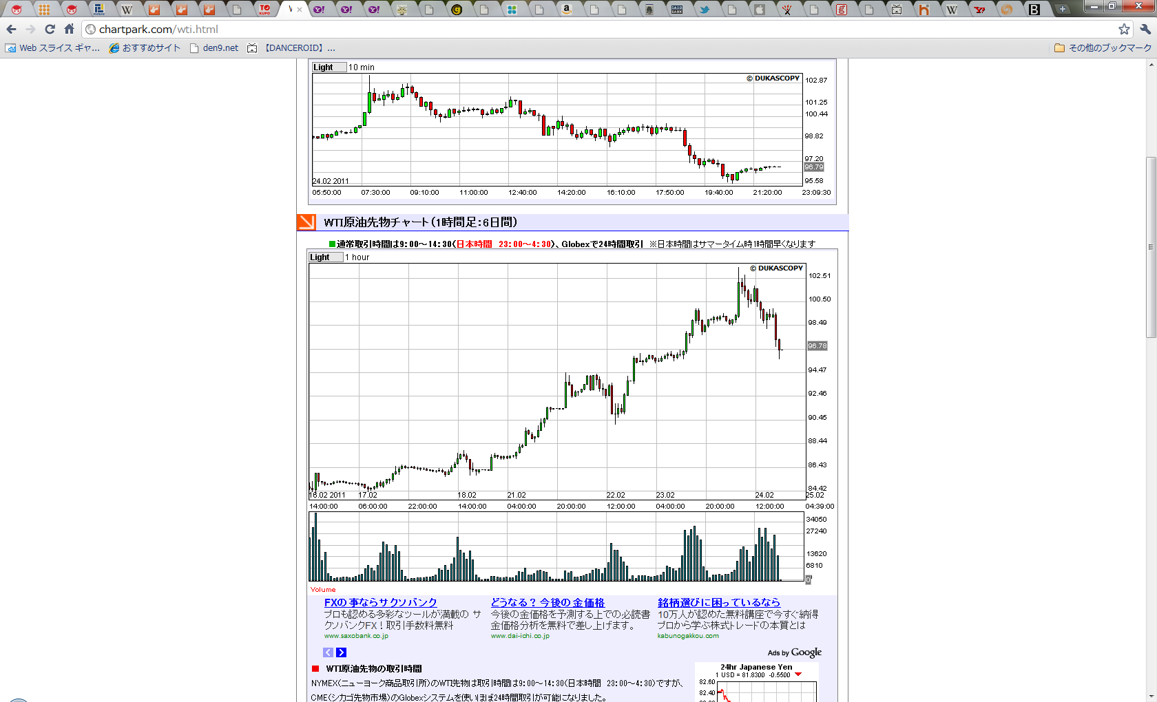 個人的な予想としてはそろそろリビア関連下げもそろそろ終わるのではないかと思っていたが、相場もそろそろ同意し始めたかな?というところ。リビア関連でもう少し落ち着いたニュースがでることと、さらなる原油の価格の下げがくれば週末手仕舞いによるショートカバーも入るのではないかと思います。
