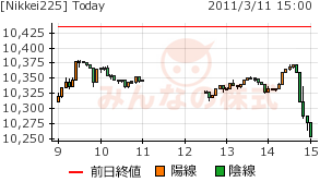 地震直後から急落。下げの速さは、通信速度と等しいのだろう。素人でも下げるのはわかっているが、高速回線で直結された大手しか、手出しできないに決まっている。