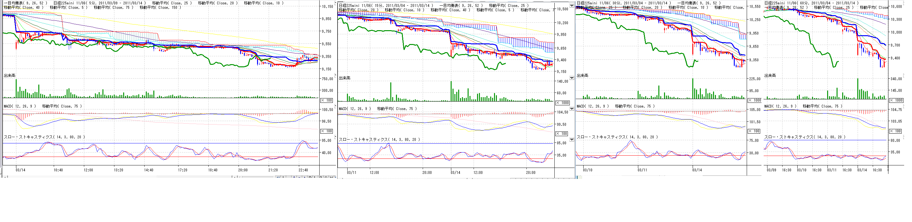 2011/03/14 - 月とスッポンさんの株式ブログ。タイトル:「ブログ更新頻度自粛」 本文:節電のため、日々のブログ更新は分足チャートの記録のみで終わらせていただきます。