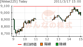 2011/03/17 - minnsann123さんの株式ブログ。タイトル:「3/17のメモ 模様眺め(訂正版)」 本文:今日は、原発不安で為替が円高に進む中での取引となった。(訂正箇所は下線部) NK 画像1 右図は一時的コピー