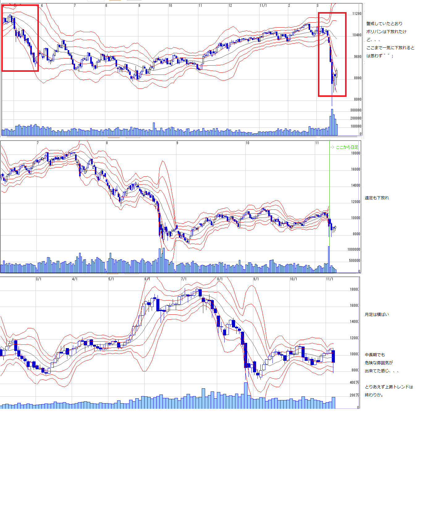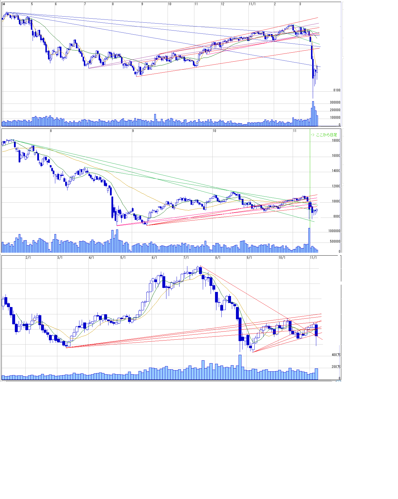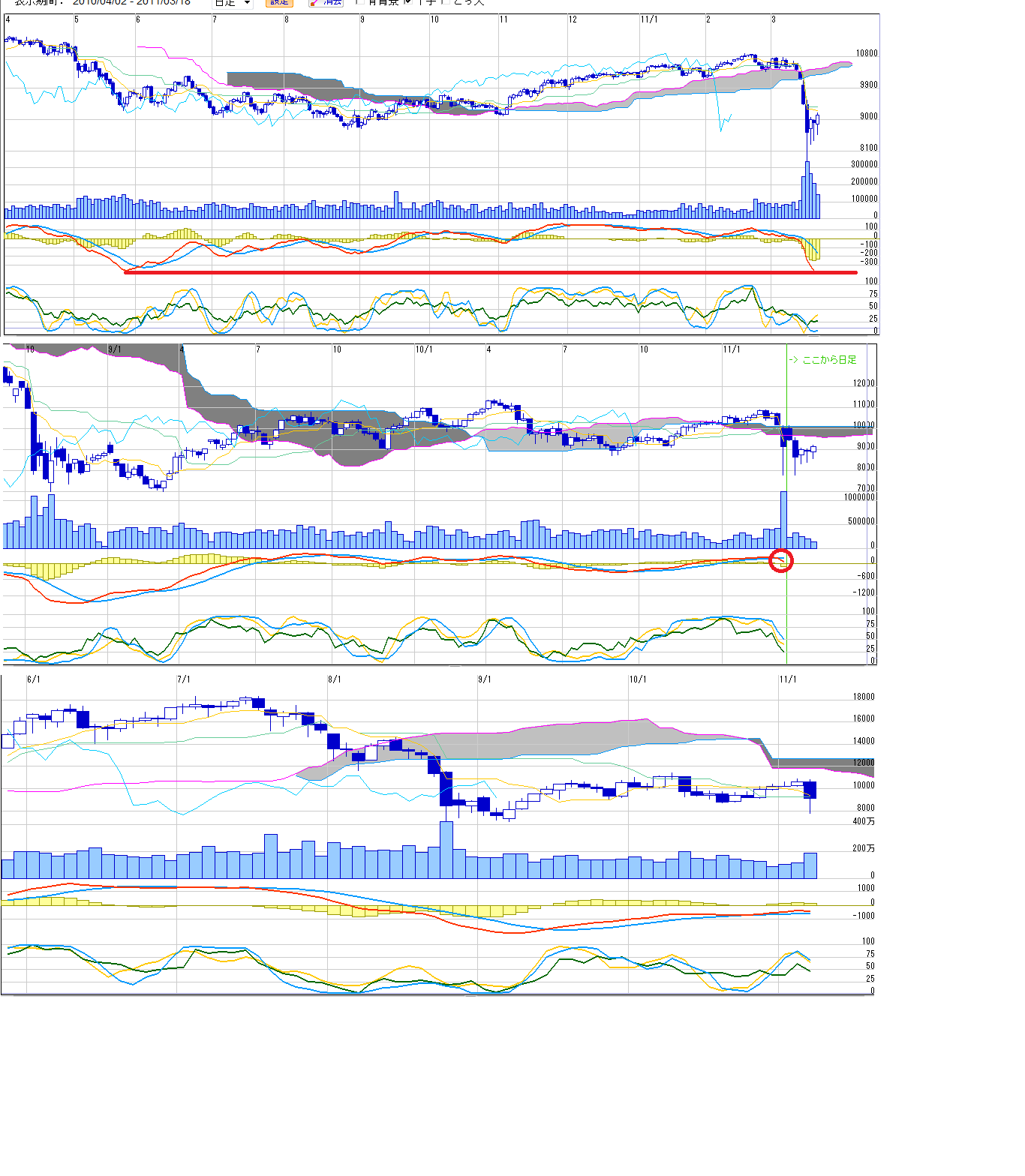 2011/03/21 - 月とスッポンさんの株式ブログ。タイトル:「3/22~ 来週のチャートポイント①」 本文:説明省略でチャートの記録のみ残します。 あくまで自分用のメモです。