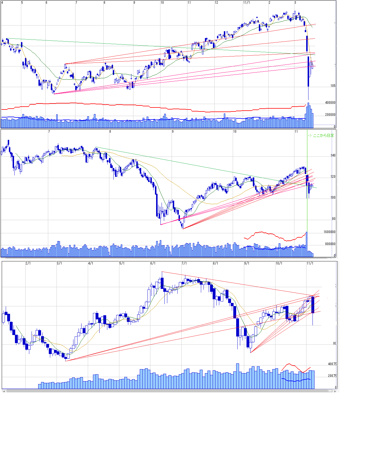 2011/03/21 - 月とスッポンさんの株式ブログ。タイトル:「3/22~ 来週のチャートポイント②」 本文:1~3 ドル建て日経