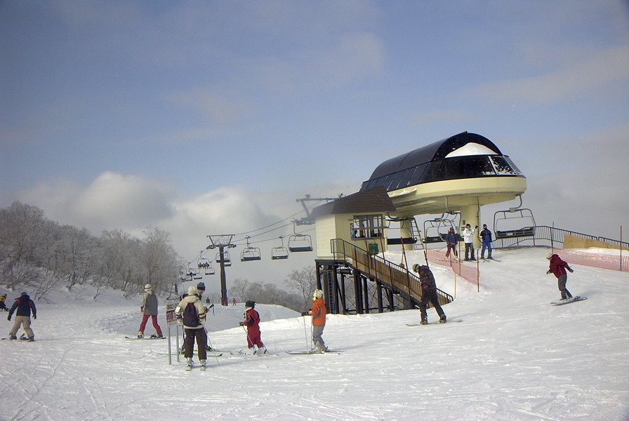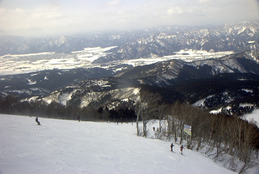 最近まとまった降雪が無かったのか頂上付近のゲレンデの状態は氷の上にザラメが載ったようで少々恐かったです。