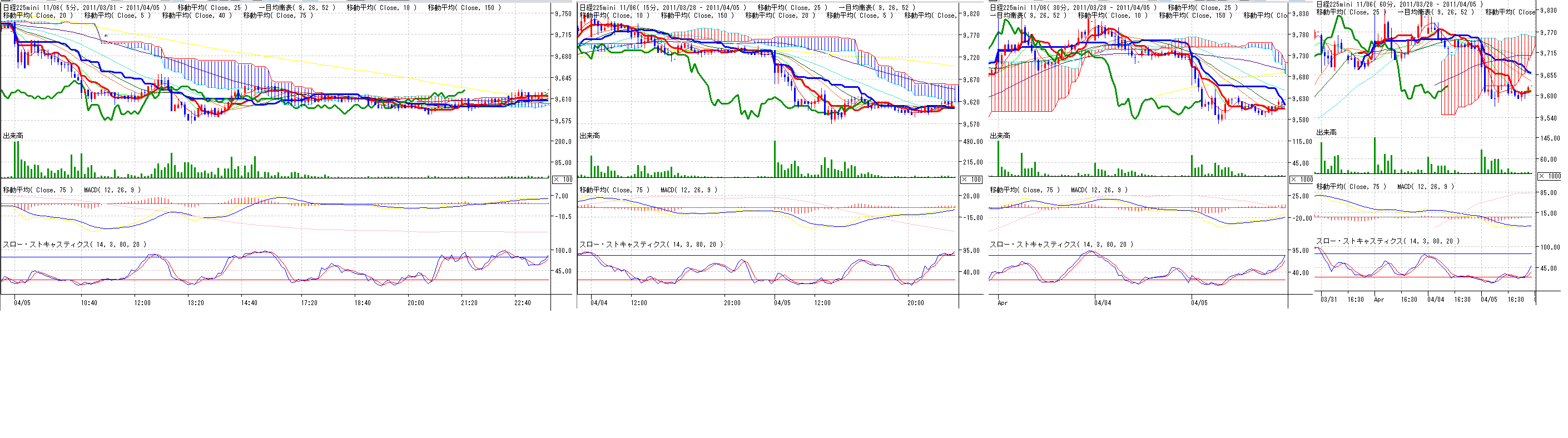 2011/04/05 - 月とスッポンさんの株式ブログ。タイトル:「4/5 本日のチャート」 本文:相場雑感 今日の安値は先週のMPのレッジ手前。テクニカルが機能しつつある。 GSのOPポジはデルタマイナス、、、SQはどうなるかな、、、 1.MP 2、先週のMP 3、分足 ニュース